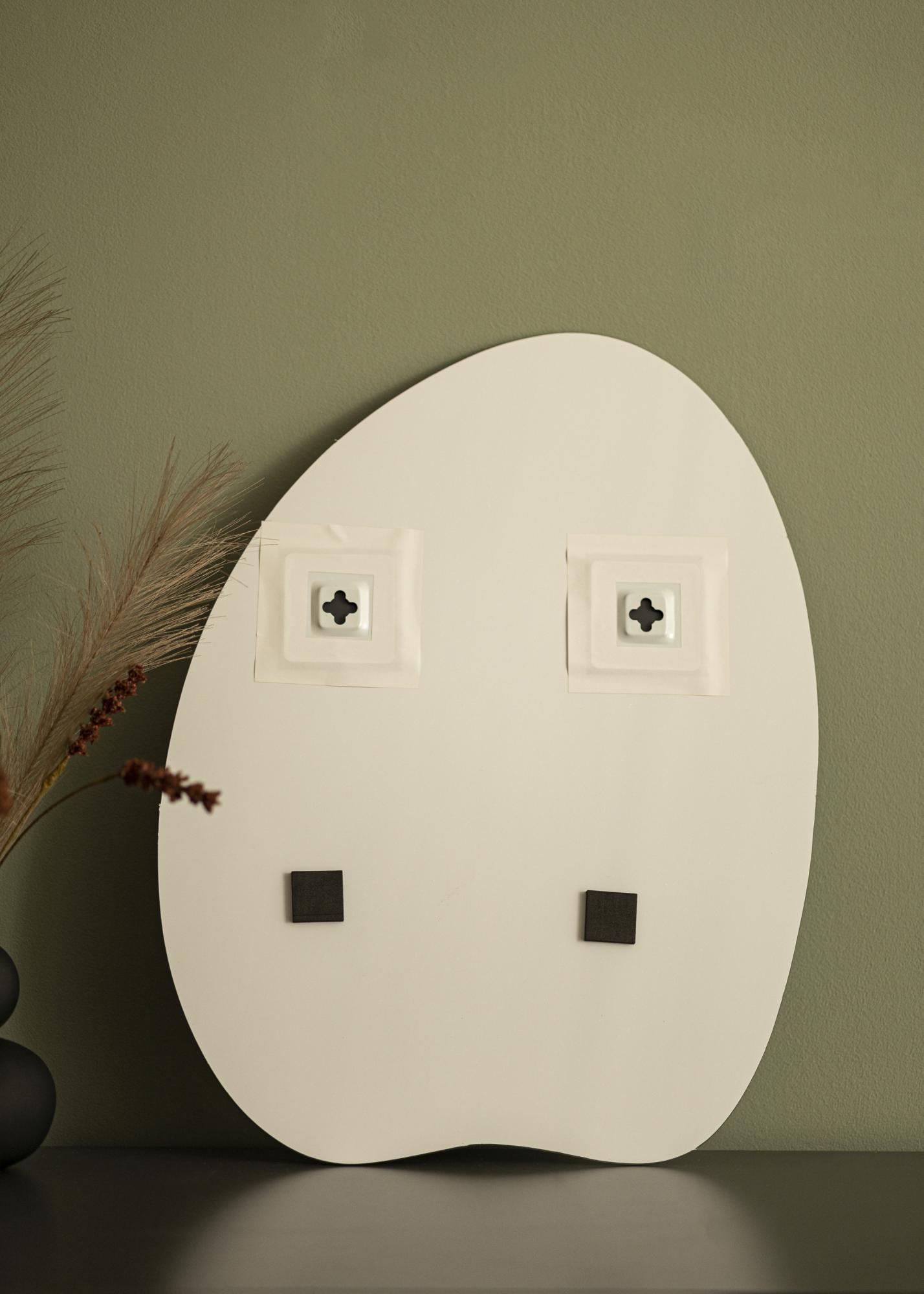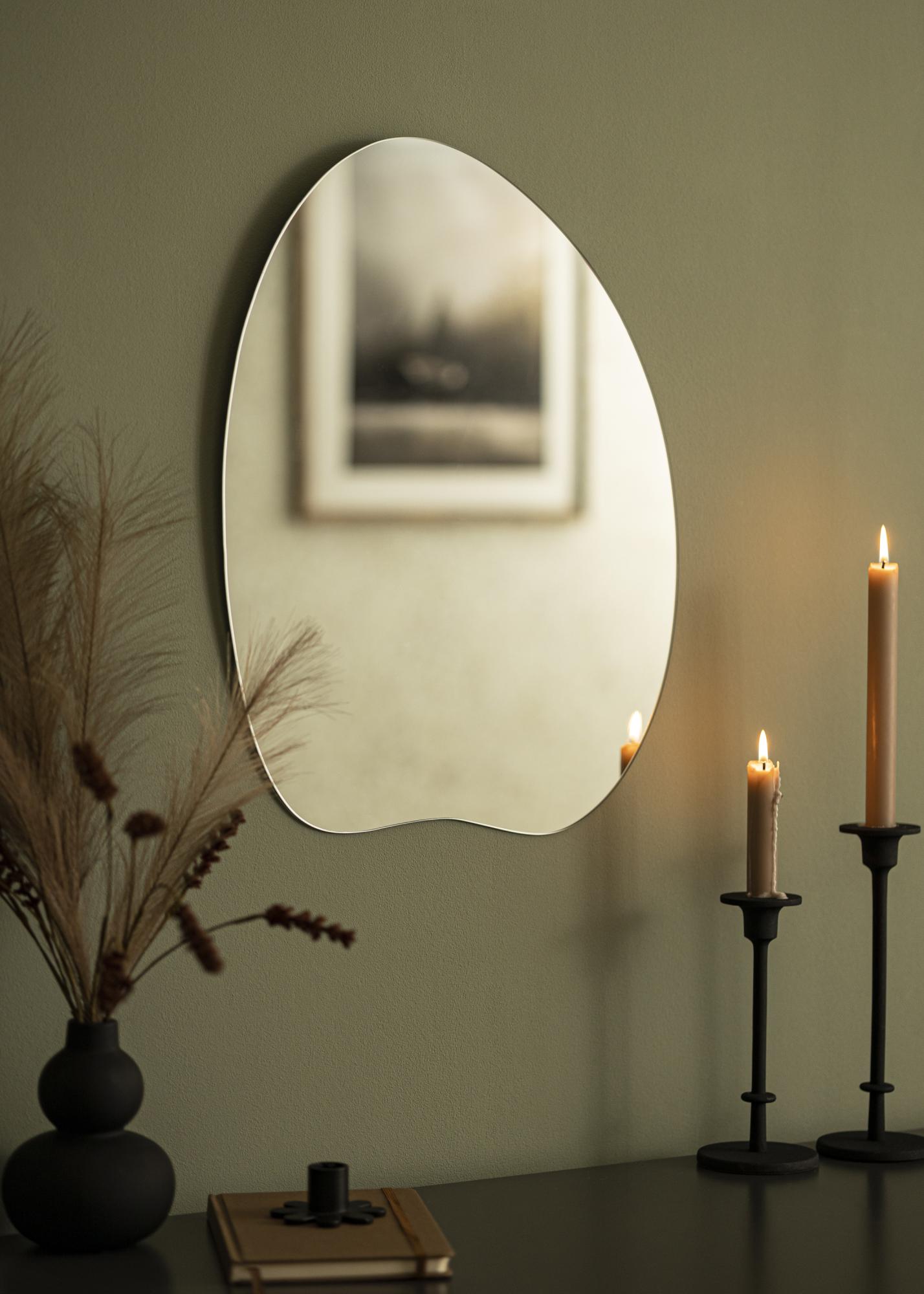 Jei ieškote sieninio veidrodžio su įdomia forma, šis veidrodis yra skirtas jums. Unikalus dizainas, su suapvalinta forma ir lengvai banguotu apatiniu kraštu, puikiai derinamas su plonu 4 mm veidrodiniu stiklu. Veidrodis neturi rėmo, todėl suteikia minimalistinę išvaizdą. Dėl išmanių sieninių tvirtinimo detalių gale, veidrodį galite lengvai pakabinti ant sienos vertikaliai.