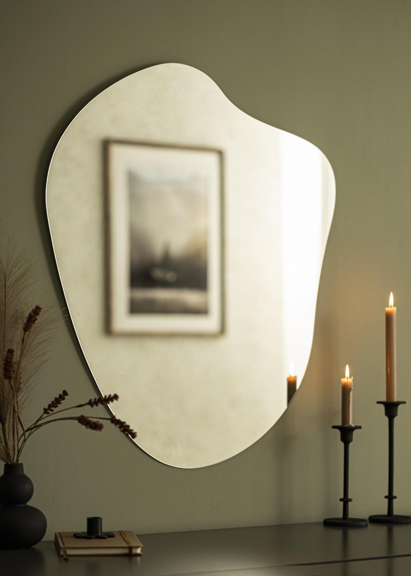 Leiskite šiam madingam sieniniam veidrodžiui tapti įdomiu interjero elementu, kuris gražiai atspindi šviesą iš langų ir lempų. Unikali forma ir rėmo nebuvimas suteikia veidrodžiui būdingą išvaizdą, kuri yra tiek moderni, tiek minimalistinė.