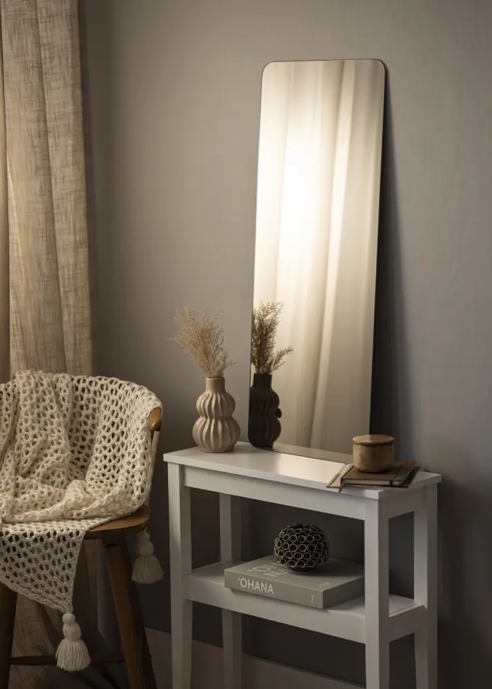 Padėkite veidrodį svetainėje, koridoriuje, miegamajame – arba bet kuriame kambaryje, kuriame norite pridėti tiek praktines, tiek dekoratyvines funkcijas, kurias šis stilingas veidrodis siūlo! Veidrodis yra įvairių dydžių, o šis variantas yra 40x100 cm.
