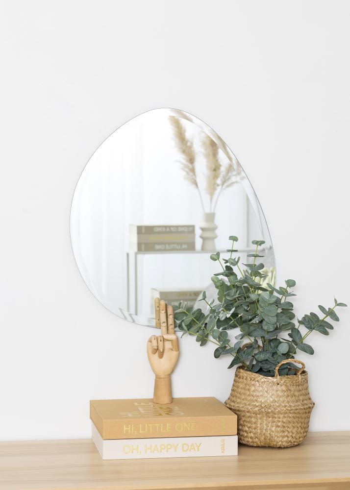 Šis KAILA sieninis veidrodis turi elegantišką asimetrišką formą, kuri primena lašą. Veidrodis yra labai plonas ir neturi rėmo, kas kartu su prabangiai fazetiniais kraštais dar labiau sustiprina elegantišką ir modernų įvaizdį. Tai labai dekoratyvinis sieninis veidrodis, kuris garantuotai patrauks dėmesį bet kurioje patalpoje, kurioje jis bus pastatytas – tiek svetainėje, tiek prieškambaryje ar miegamajame. Veidrodžio dydis yra 50x58 cm.