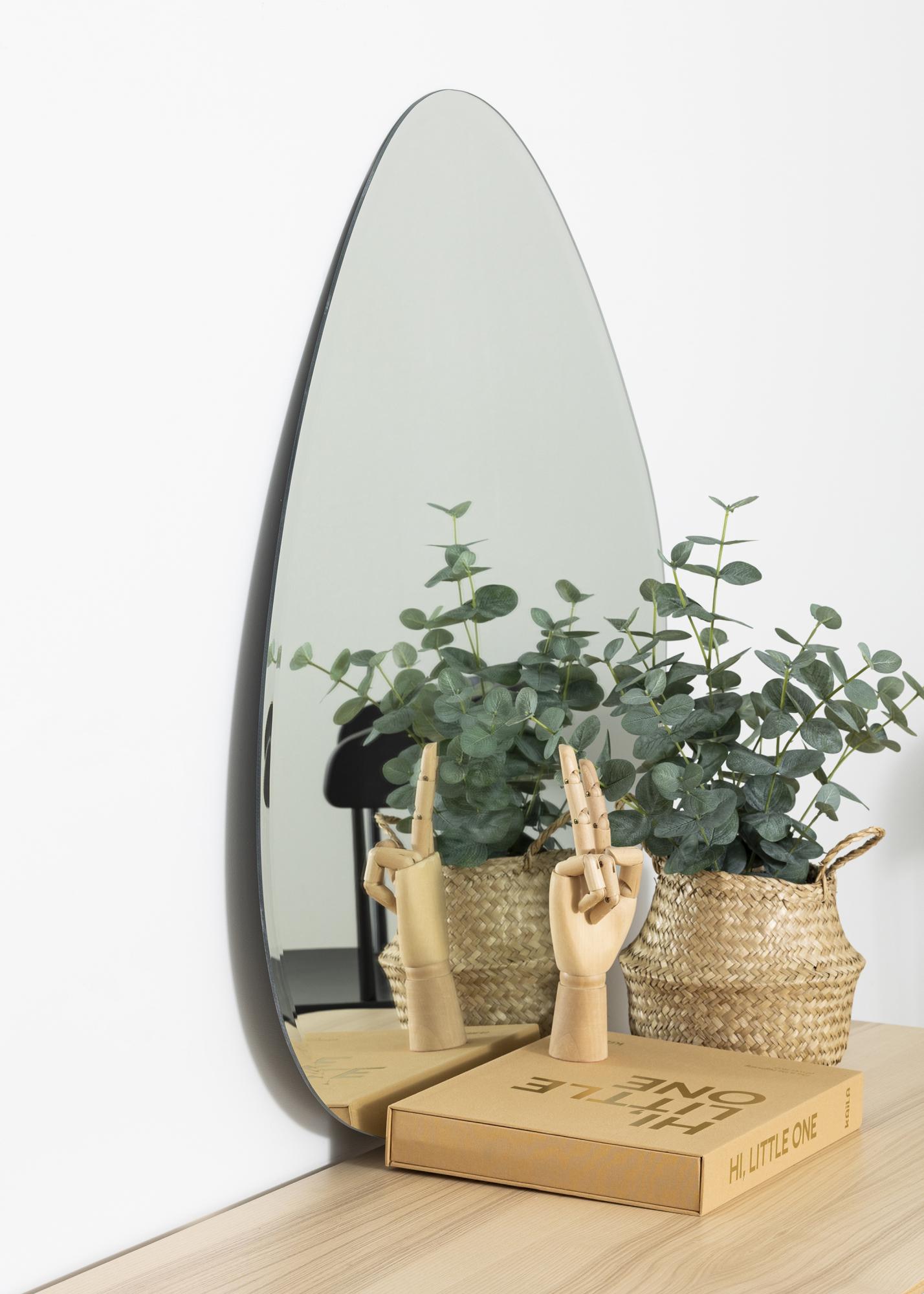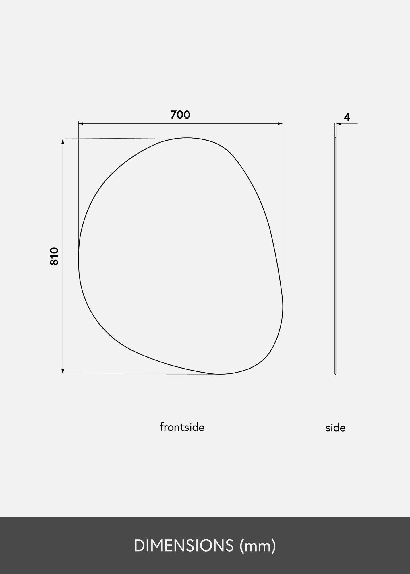 Šis KAILA sieninis veidrodis turi elegantišką asimetrinę formą, primenančią lašą. Veidrodis yra labai plonas ir neturi rėmo, kuris kartu su prabangiai šlifuotu kraštu dar labiau pabrėžia elegantišką ir modernią išvaizdą. Tai yra labai dekoratyvus sieninis veidrodis, kuris tikrai traukia akį, nesvarbu, kuriame kambaryje jis būtų patalpintas – svetainėje, koridoriuje ar miegamajame. Veidrodis yra 70x81 cm dydžio.