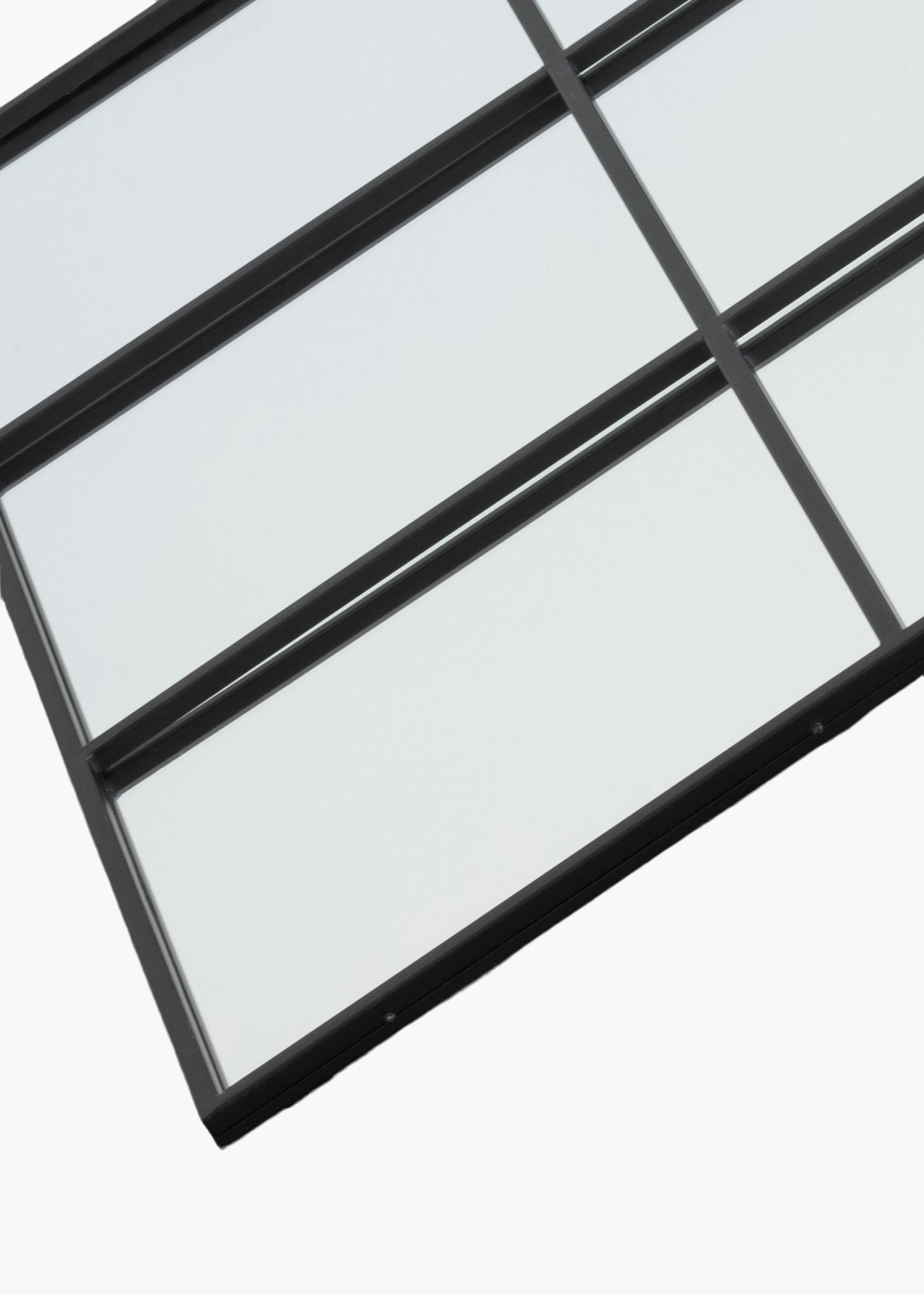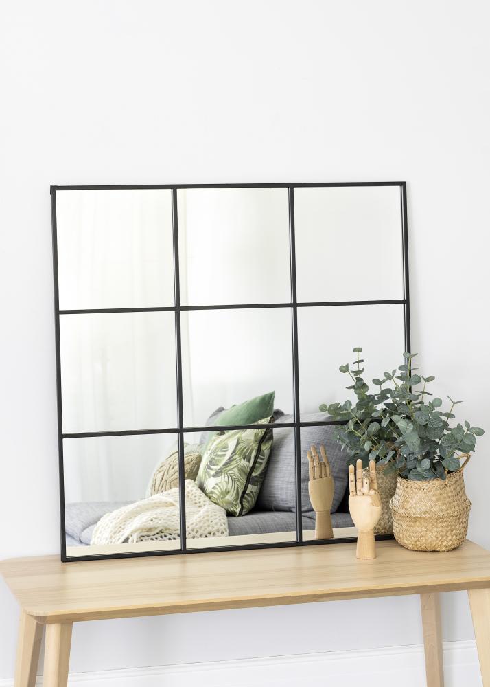 Tai yra kvadrato formos veidrodis su stilingu tinklelio raštu. Kvadratėliai yra stilingai įrėminti juodomis plonomis metalinėmis linijomis, kurios šiai sienos veidrodžiui suteikia kaimišką ir pramoninį charakterį. Kvadratinė forma suteikia veidrodžiui elegantiškesnį įvaizdį. Padėkite šį veidrodį, pavyzdžiui, prieškambaryje, virtuvėje ar miegamajame, kad sukurtumėte daugiau erdvės kambaryje ir tuo pačiu gautumėte dekoratyvią interjero detalę. Yra sieninis tvirtinimas. Veidrodis yra 90x90 cm.