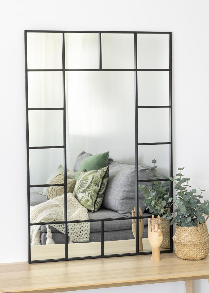 Šis stilingas veidrodis iš KAILA turi dizainą, primenantį gražų langą. Veidrodyje yra keli skirtingi langeliai, kurie gražiai įrėmina didesnį veidrodžio paviršių centre. Langeliai elegantiškai yra įrėminti juodomis plonomis metalo linijomis, kurios suteikia veidrodžiui šiek tiek industrialinį, bet kartu elegantišką charakterį. Yra sieninio tvirtinimo laikiklis montavimui ant sienos, bet veidrodis taip pat gali būti gražiai atremtas į sieną. Veidrodžio matmenys yra 80x120 cm.
