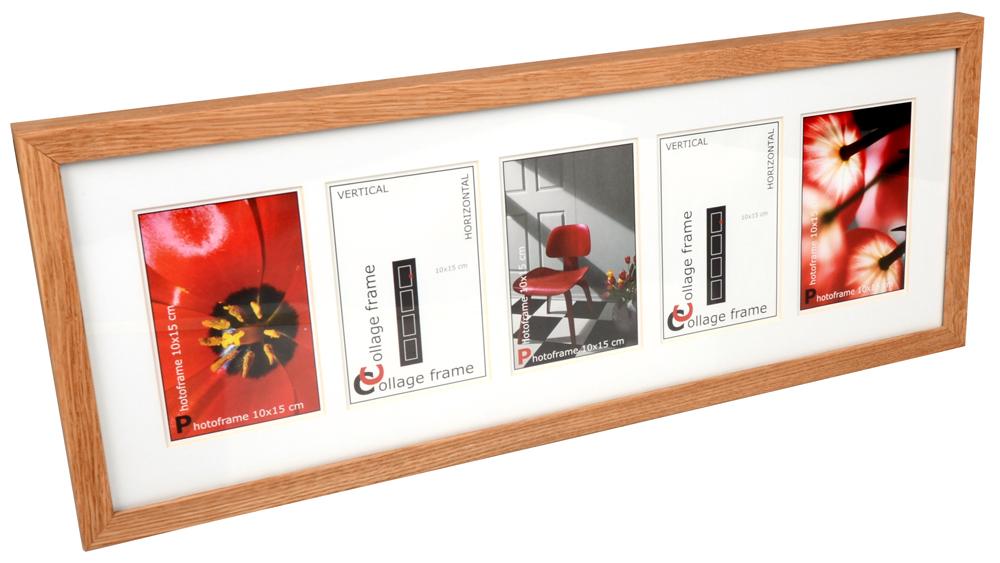 Koliažinė rėmelis 5 nuotraukoms iš aukštos kokybės ąžuolo. Su stipria profiliu tai yra rėmelis, kurį visada pastebėsite. Rėmelyje yra vietos 5 nuotraukoms, kurių dydis 10x15 cm.