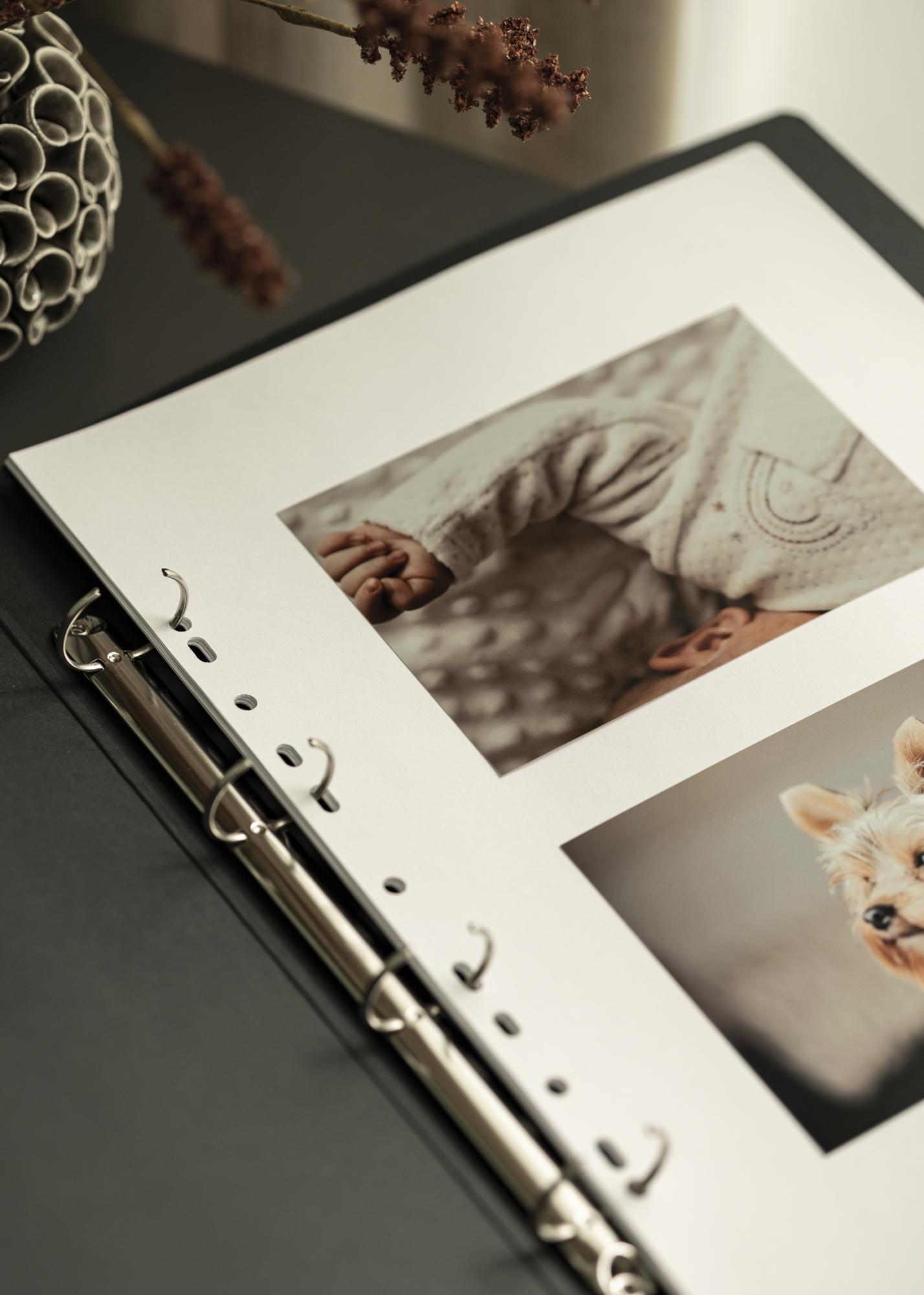 Norėdami pritvirtinti nuotraukas ar iškarpas, jums reikės klijų arba fotokampų.