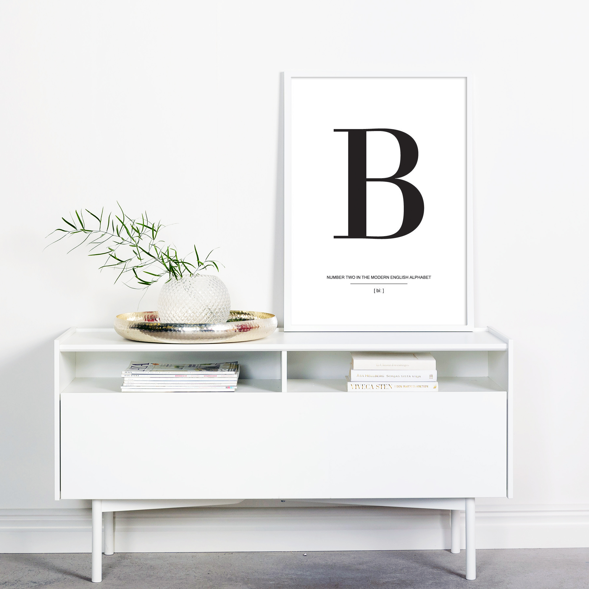 Paprastume yra grožis, ir tai tikrai įrodo ši elegantiška plakatas su raide B juoda spalva ant balto fono. Plakatas turi gražią tipografiją ir turėtų būti derinamas su kitomis raidžių plaketėmis iš tos pačios serijos, kad sukurtumėte madingą ir gražią paveikslų sienelę. Pasirinkite savo mėgstamus plakatus su raidėmis ir rinkitės iš mūsų didelio aukštos kokybės rėmelių asortimento, tada telieka leisti vaizduotei skrieti namų sienomis.