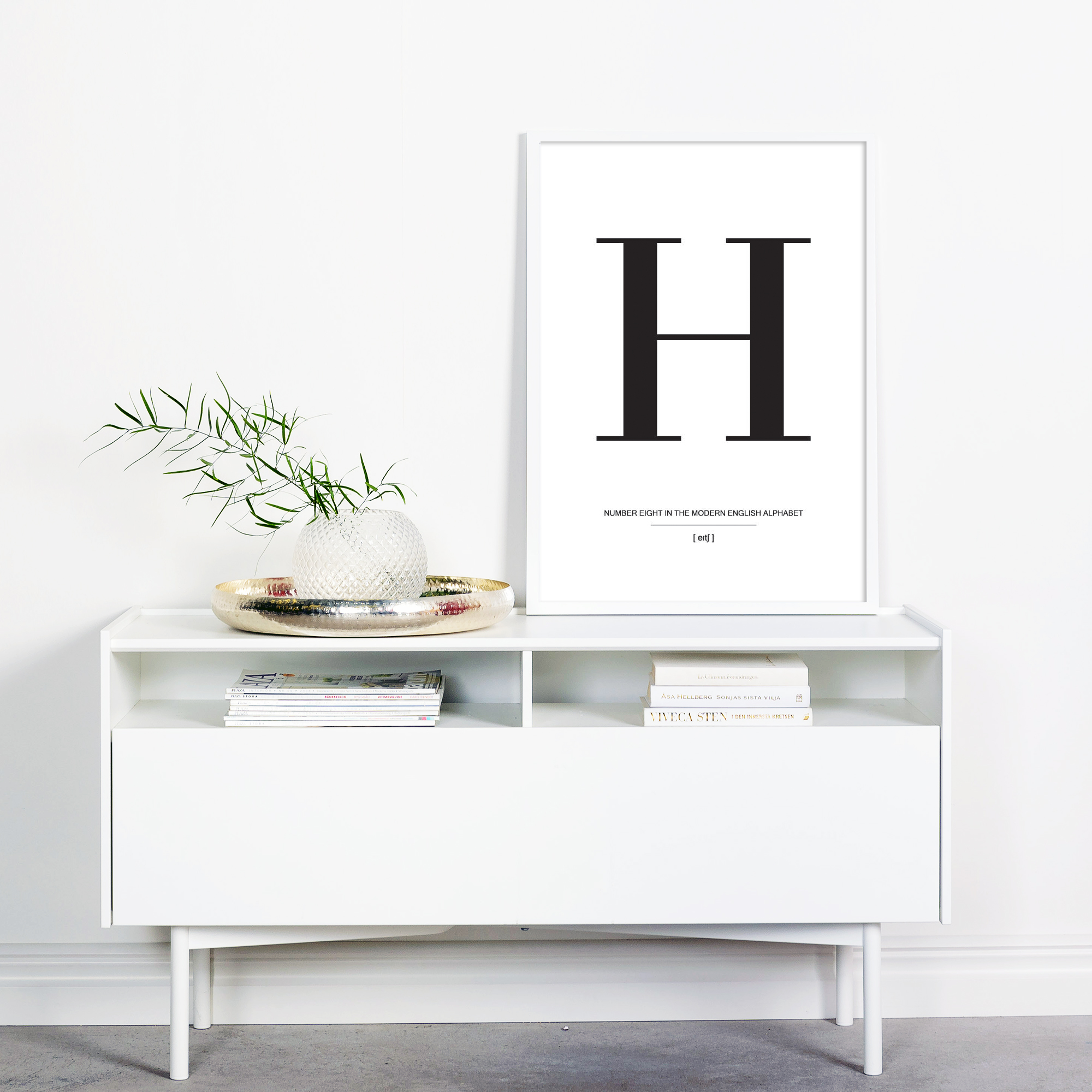Paprastume slypi grožis, ir tai tikrai įrodo šis stilingas plakatas su raidė H juoda spalva prieš baltą foną. Plakatas turi gražią tipografiją ir turėtų būti papildytas kitais raidžių plakatais iš tos pačios serijos, kad sukurtumėte madingą ir gražią paveikslų sieną. Pasirinkite savo mėgstamus plakatus su raidėmis ir rinkitės iš plataus mūsų kokybiškų rėmelių asortimento, tuomet tereikia leisti fantazijai sklandyti namų sienomis.