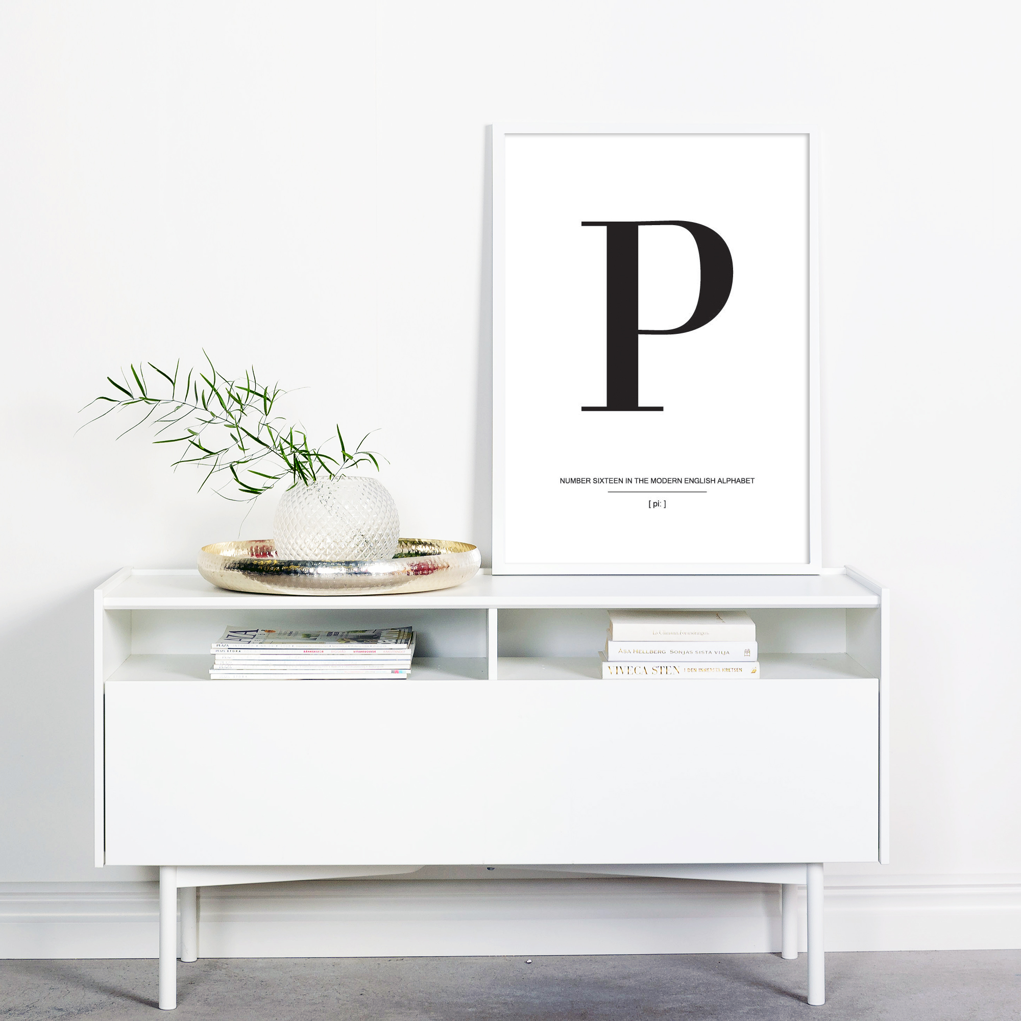 Paprastume yra grožis, ir tai tikrai įrodo šis elegantiškas plakatas su raide P juodos spalvos ant balto fono. Plakate yra graži tipografija ir jį reikėtų papildyti kitomis to paties serijos raidžių plakatų afišomis, kad sukurtumėte madingą ir gražią paveikslų sieną. Pasirinkite savo mėgstamus plakatus su raidėmis ir rinkitės iš mūsų plataus kokybiškų rėmelių asortimento, tada leiskite savo vaizduotei sklisti ant namų sienų.