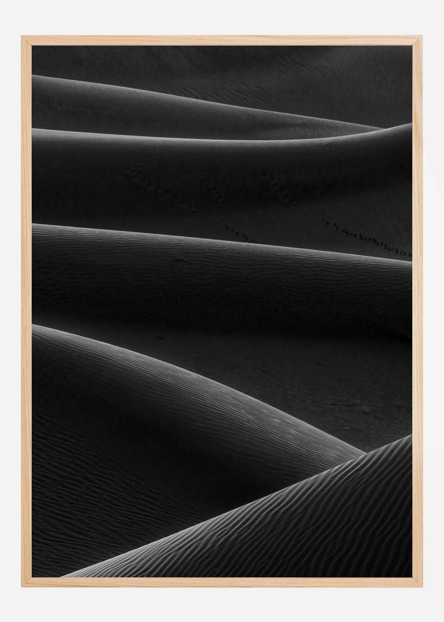 Fantastiškas juodai baltas plakatas su dykumos smėlio kopomis. Banguotas smėlis išryškinamas natūralia šviesa, krentančia ant smėlio kopų ir sukuriančia kraštų efektą. Nuostabus, bet tylus vaizdas, kurį galima pakabinti ant baltos sienos, kad suteiktų begalybės pojūtį.