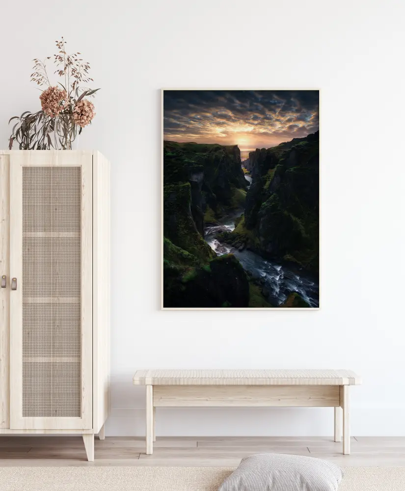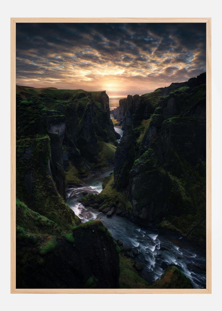 Nuostabus kraštovaizdžio plakatas su Didžiuoju Kanjonu, nufotografuotas ankstyvą vakarą. Tamsiai žalios atspalviai sukuria vėsą, o gražus oranžinės ir pilkos spalvos dangus apšviečia greitai tekantį upę. Sek upę ir pamatyk, kur ji tave nuves.