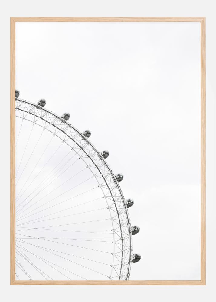 Įspūdingas juodai baltas Londono akies atspaudas. Pilkasis Londono dangus fone, rato stipinai nukreipia žvilgsnį į devynias keleivių kabinas. Tikrai įspūdingas plakatas, pabrėžiantis šią didingą techninę konstrukciją. Įsivaizduokite vaizdą iš vienos iš šių kabinų.