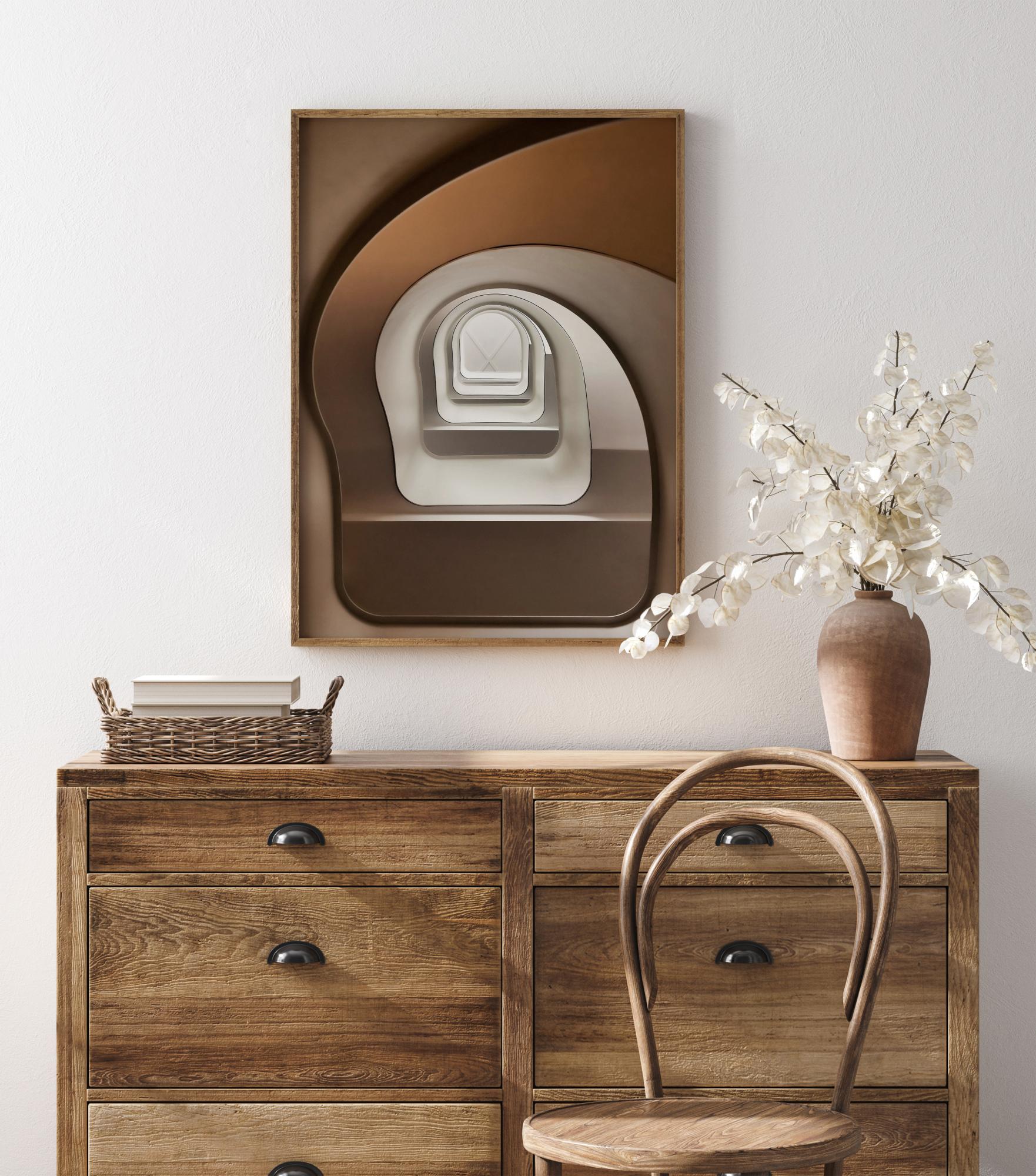 Menininkas įtraukia jus į siurrealistinę, nesuprantamą bedugnę. Šis paslaptingas spaudinys skatina susimąstyti. Su savo daugybe reikšmių ir interpretacijų, šis plakatas yra tobula pokalbio pradžia, kuri skatina svečius diskutuoti ir mąstyti. Pastatykite šį kūrinį savo svetainėje geriausiems rezultatams pasiekti.