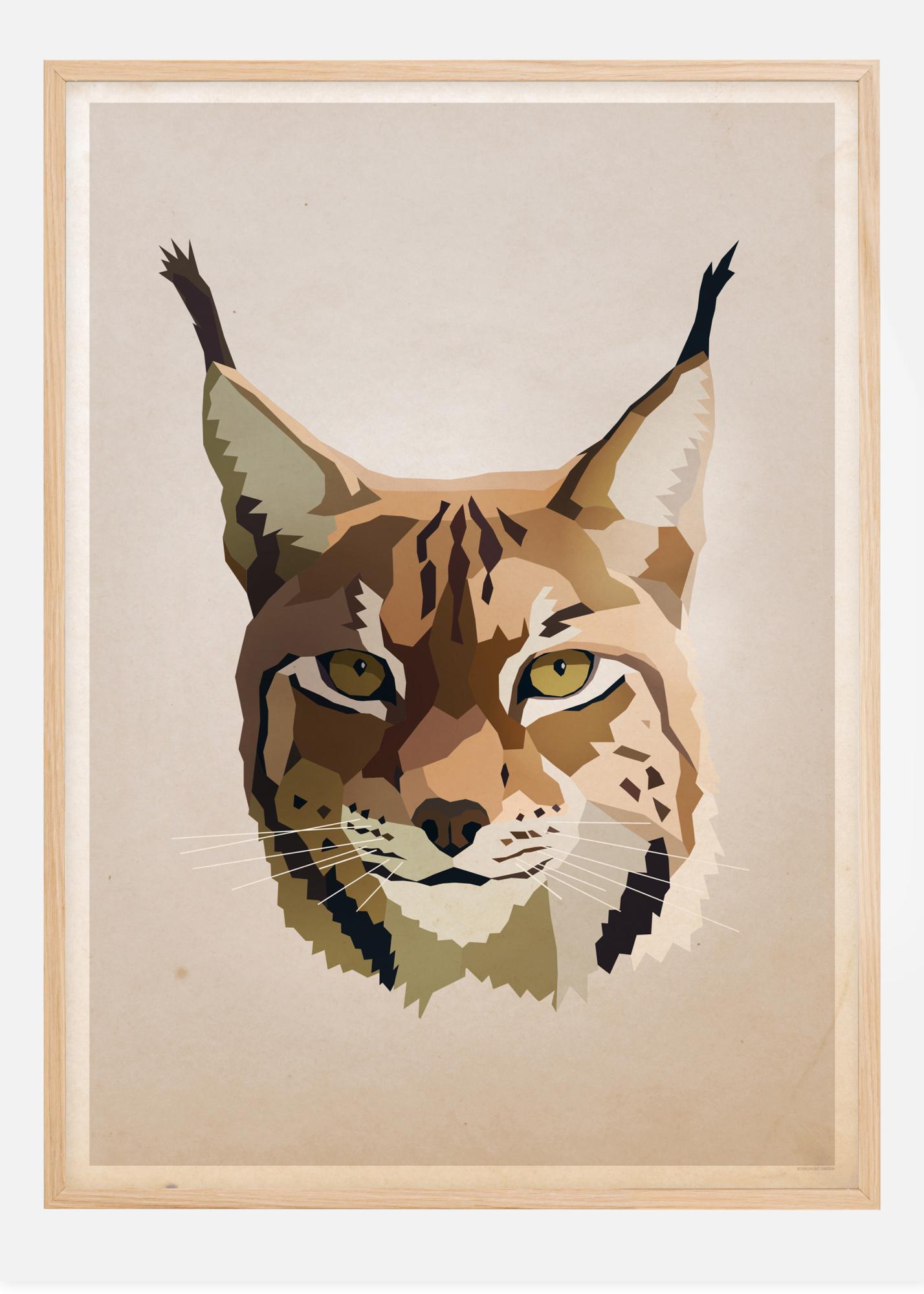Intensyvus pastelinis plakatas su gražia lūšimi. Šviesiai rožiniame fone gyvūno akys atspindi dėmesingą, tačiau dominuojantį žvilgsnį. Įvairios rudos ir žalios pastelės spalvos gražiai susilieja lūšies akyse.