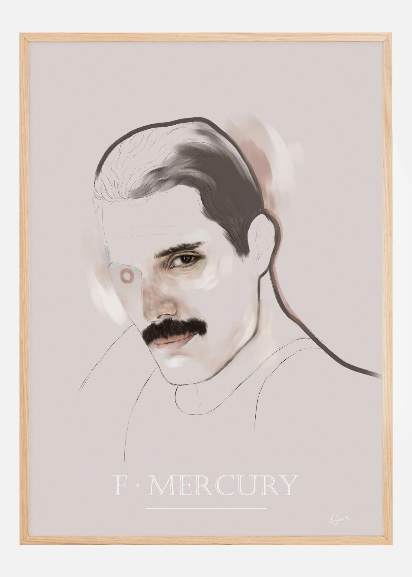 Įspūdingas Freddie Mercury portretas šviesiai rožiniame fone. Jo kairioji akis patraukia žvilgsnį, o dešinė akis pakeista žiedu. Jo drąsi juoda ūsai ir juodai tamsūs plaukai yra pagrindiniai šio išskirtinio plakato bruožai. Stiprūs brūkšniai nubrėžia jo galvos ir pečių kontūrus. Girdėkite muziką, kai pakabinsite šį portretą savo namuose.