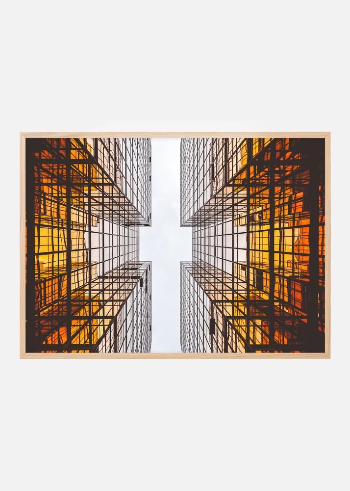 Plakatas su futuristine architektūra, kuri savo grafiškomis linijomis sukuria įdomų raštą. Spalvos nyksta nuo giliai oranžinės pastato pagrinde link balto dangaus. Plakatas puikiai tinka su plonesniu rėmu tiek minimalistiniame interjere, tiek kitose stiliuose su grafiniais elementais. Derinkite su kitais paveikslais apie įdomią architektūrą ar miesto aplinkas.
