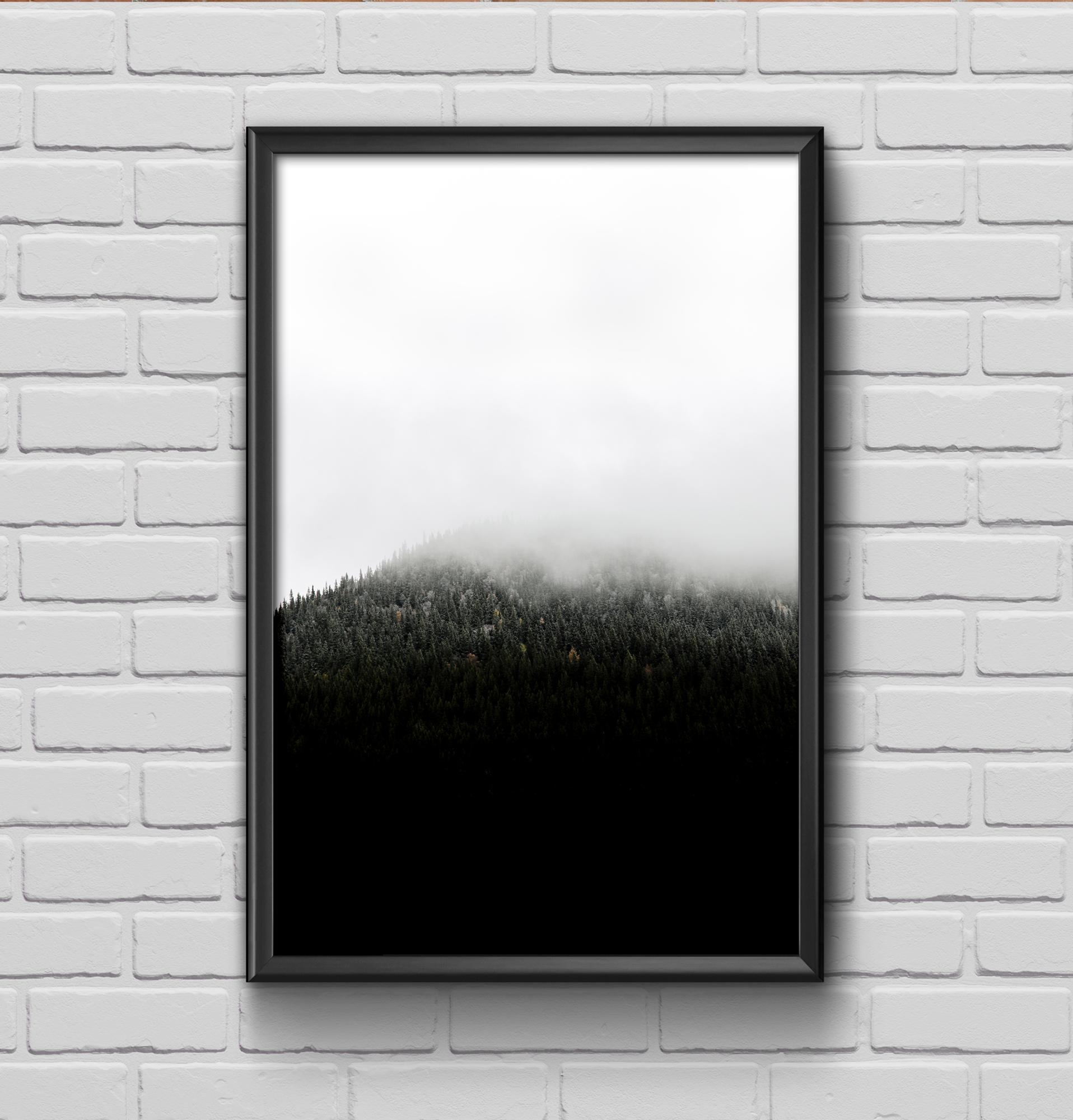 Rami nuotrauka, vaizduojanti miškais apaugusią kalno viršūnę, esančią po tankiu rūku. Ramus ir harmoningas plakatas su ryškiais kontrastais ir švelniomis linijomis. Derinkite su kitais mūsų nuostabiais motyvais didesnėje paveikslų sienoje.