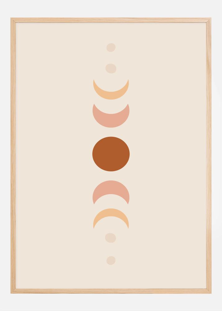 Su savo švelnia spalvų palete ir paprastumu, šis plakatas puikiai tinka minimalistinio interjero stiliui arba kaip dalis daugiau eklektiško išraiškos. Šis mėnulio fazių plakatas yra daugiau nei dekoracija; tai priminimas apie gamtos ciklus ir tylų ritmą mūsų pačių gyvenimuose. Tai ideali sieninė puošmena meditacijos erdvei, miegamajam arba kaip dalis atsipalaidavusios svetainės aplinkos.