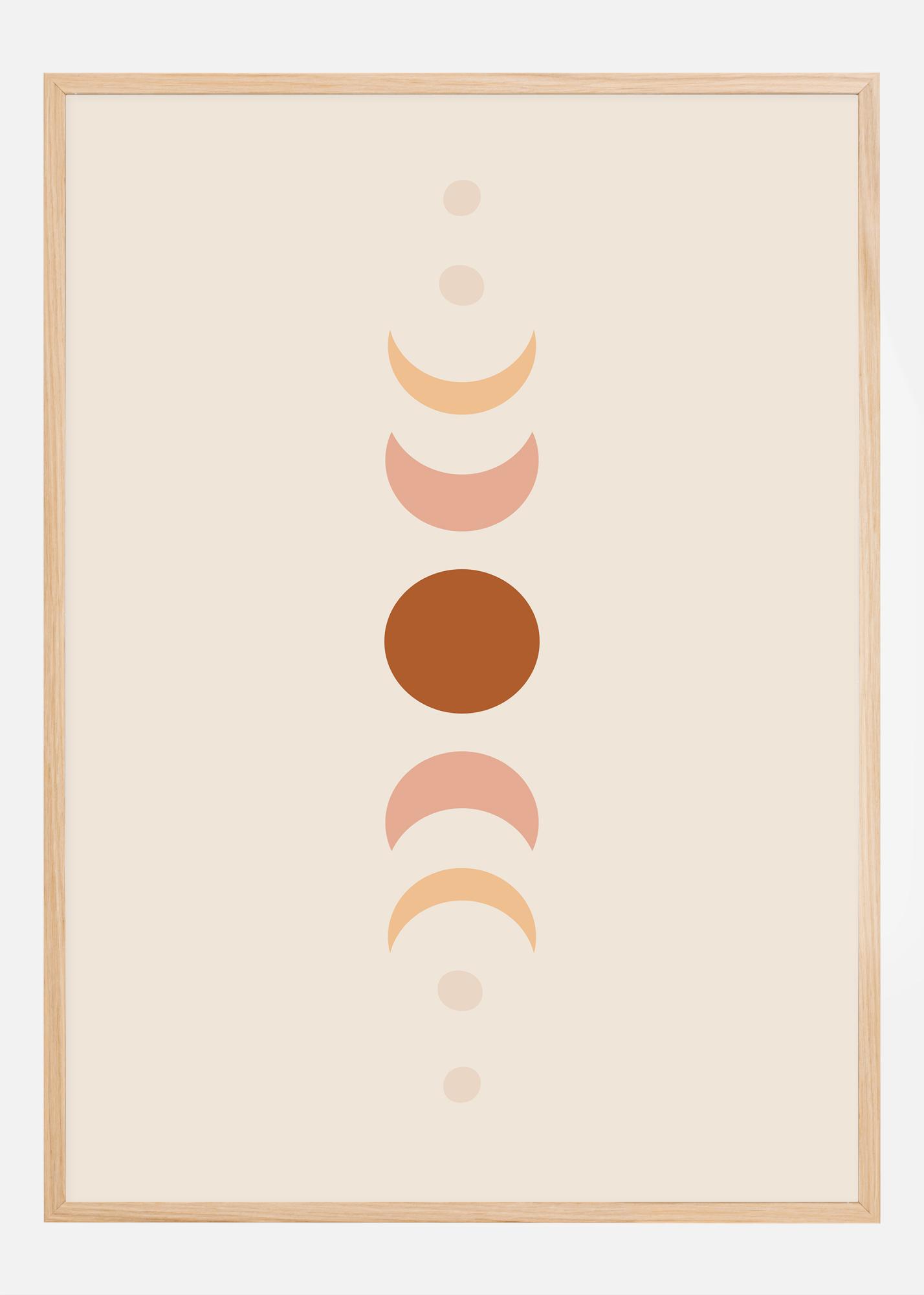Šis estetiškai patrauklus plakatas, vaizduojantis mėnulio fazes vertikalioje sekoje, siūlo raminantį ir švarų dizainą, suteikiantį bet kuriam kambariui ramybės ir harmonijos jausmą. Nuo jauno mėnulio iki pilnaties, kiekviena fazė vaizduojama švelniomis pastelinėmis spalvomis prieš neutralų foną, sukurdama subtilią, tačiau galingą vizualinę patirtį.