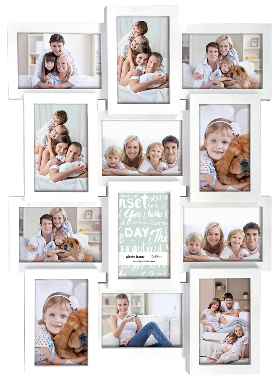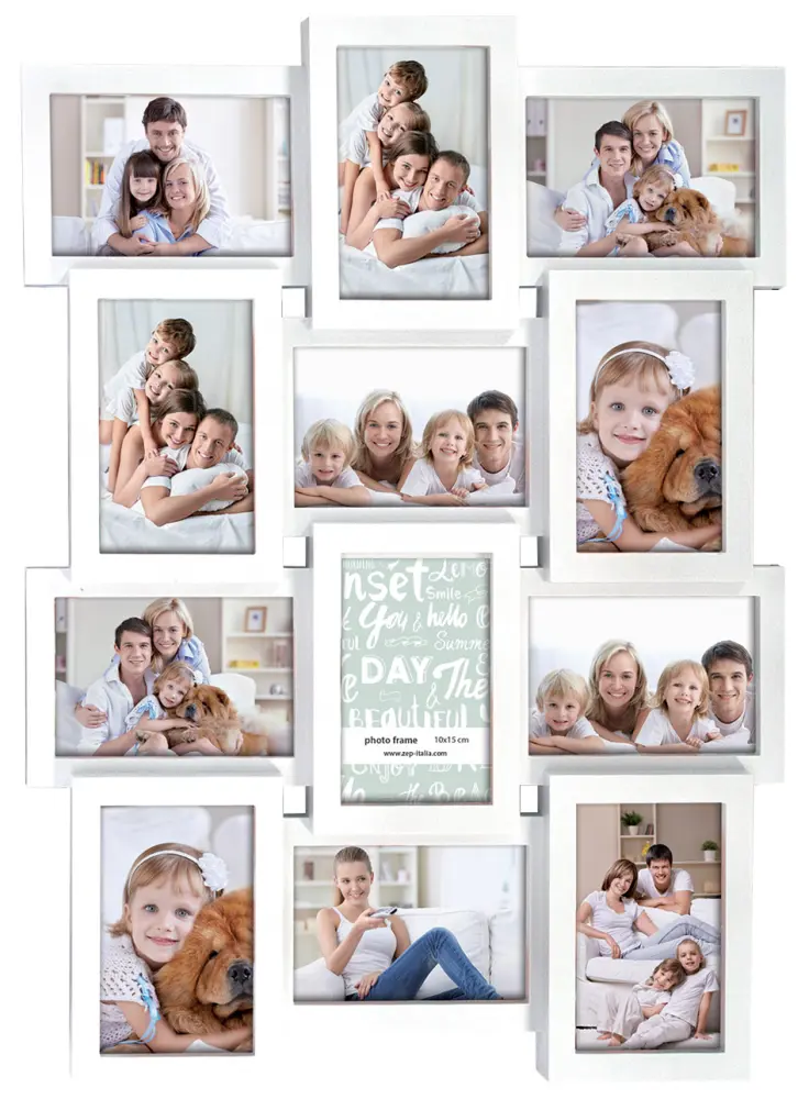 Įamžinkite daugybę savo geriausių prisiminimų ir sudėkite juos į šį rėmelį! Šis koliažo rėmelis talpina net 12 nuotraukų, kurių dydis 10x15 cm, tiek portretinio, tiek kraštovaizdžio formatu. Rėmelio išoriniai matmenys yra 46x60 cm. Yra sieninis tvirtinimas. Rėmelio elegantiškas dizainas leidžia puikiai išryškinti nuotraukas ir derėti su kitais sienos puošmenimis. Skirtingi rėmelio elementai yra įvairaus gylio, o tai suteikia 3D efektą ir daro šį koliažo rėmelį ryškiu dizaino akcentu.