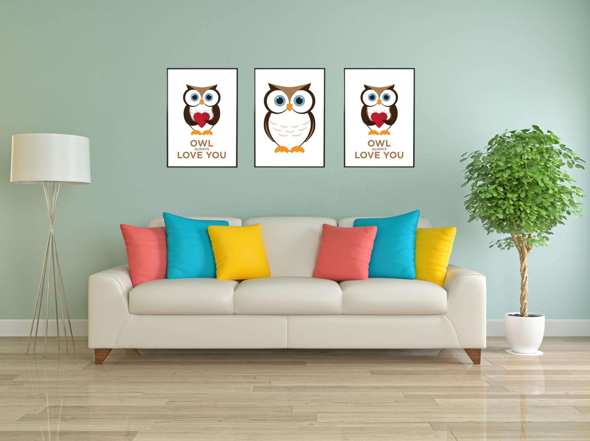 Pelėdų plakatas vaikų kambariui arba dovanoti mylimam žmogui, kuris ypač mėgsta paukščius. Grafinis spaudinys su savo elegantiška išvaizda ir prislopintomis spalvomis tinka bet kokiam interjero stiliui. Įrėminkite plakatą rėmeliu, kuris paryškina kurią nors iš motyvo spalvų, arba pasirinkite rėmą, kuris dera su kitais sienos dekoracijos elementais. Mielai pakabinkite paveikslą kartu su kitais grafiniais spaudiniais, kad sukurtumėte įdomią sieną, kuri taptų kambario centru.
