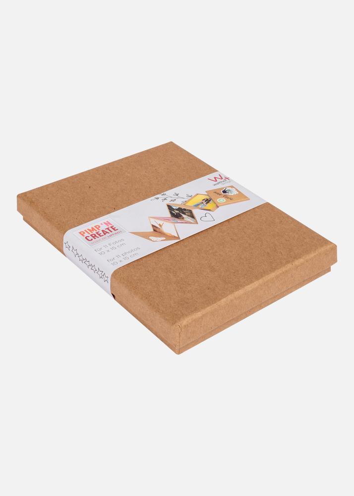 PAC Leporello-Box Ruda – tai elegantiškas armonikos albumas, sukurtas talpinti 11 nuotraukų, kurių dydis yra 10x15 cm. Viršelis pagamintas iš rudo amatų popieriaus su tokios pačios spalvos vidumi, suteikiančiu klasikiniam ir laikui nepavaldžiam pojūčiui. Šis albumas puikiai tinka stilingai surinkti ir eksponuoti jūsų prisiminimus.