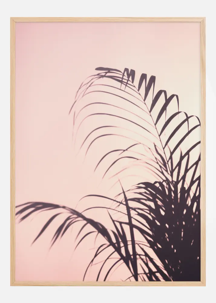 Šis elegantiškas plakatas pabrėžia grožį ir subtilumą orioje palmių lapo siluete, kurio šešėlis švelniai krenta ant pastelinės rožinės spalvos fono. Šis meno kūrinys užfiksuoja šilto, tropinio vėjo esmę ir suteikia ramybės bei atsipalaidavimo pojūtį bet kurioje erdvėje. Jis puikiai tinka tiems, kurie nori sukurti ramybės ir grožio oazę savo namuose, su spalvų deriniu, harmoningai įsiliejančiu į įvairias interjero stilius.