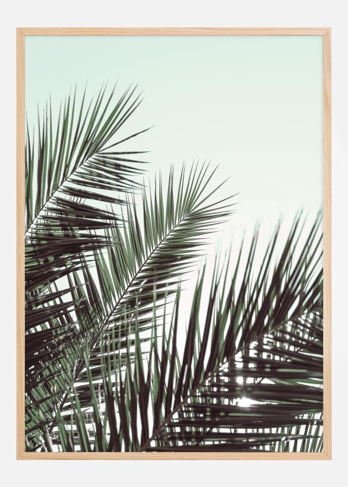 Paverskite savo namus į tropinę oazę su šiuo rafinuotu plakatu, vaizduojančiu vešlius palmės lapus prieš pastelinio dangaus foną. Šis plakatas pagauna lengvą vėją ir ramybę, kurią galima rasti tik šiltame klimate. Detalizuoti žali lapai gražiai išsiskiria prieš švelniai mėlyną dangaus foną, sukurdami amžinos vasaros ir gamtos jausmą jūsų erdvėje.