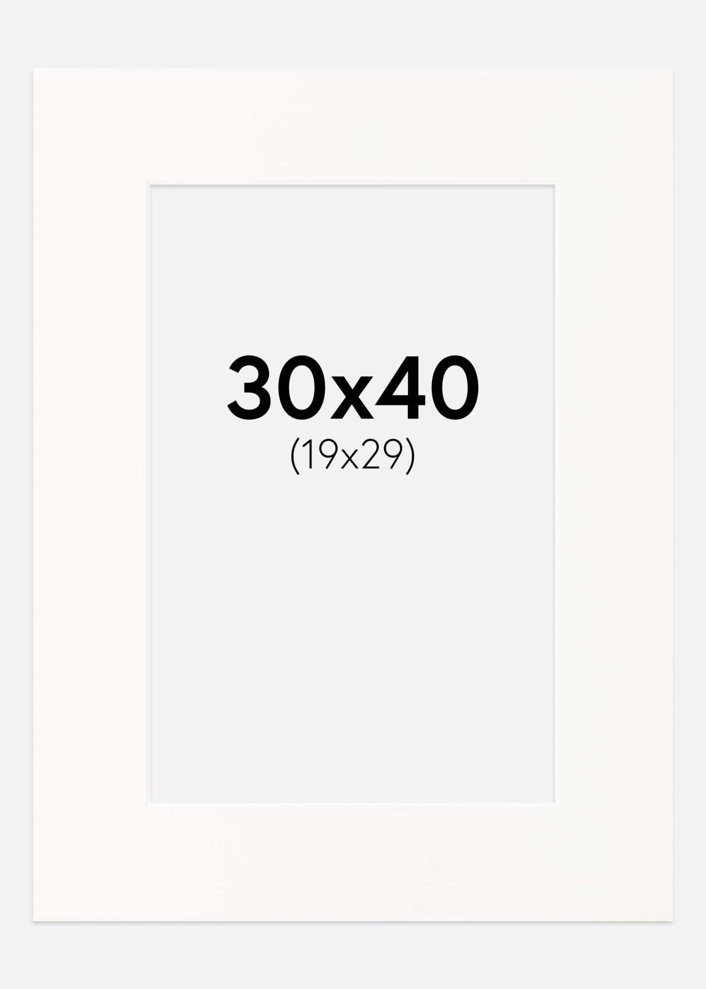 Paspartu Beveik baltas Balta šerdis 30x40 cm (19x29)