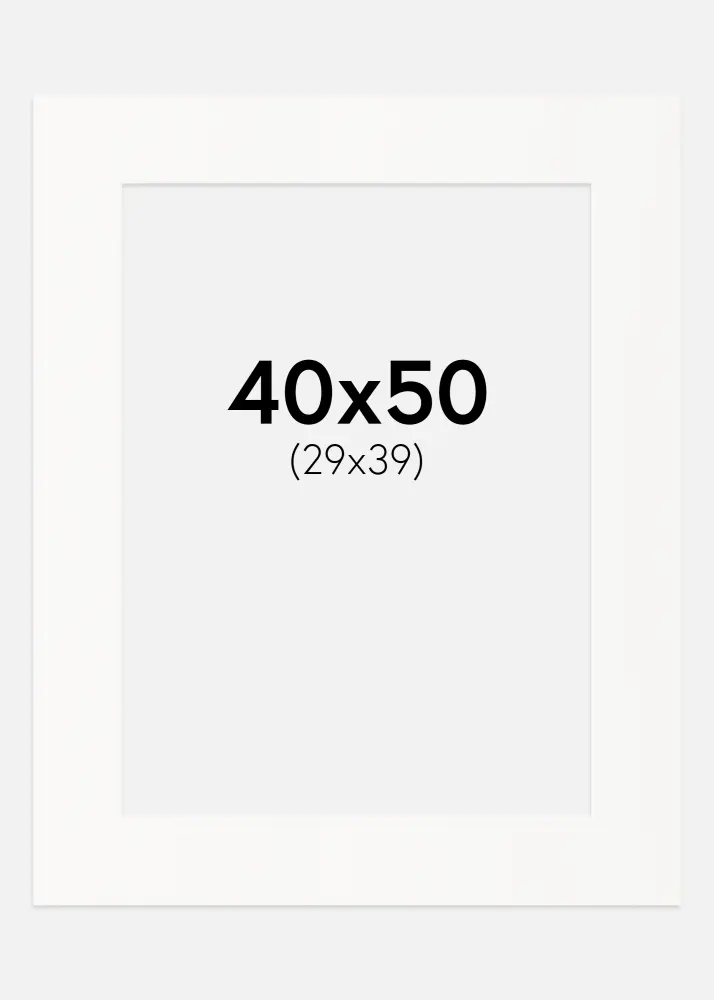 Paspartu Beveik baltas Balta šerdis 40x50 cm (29x39)