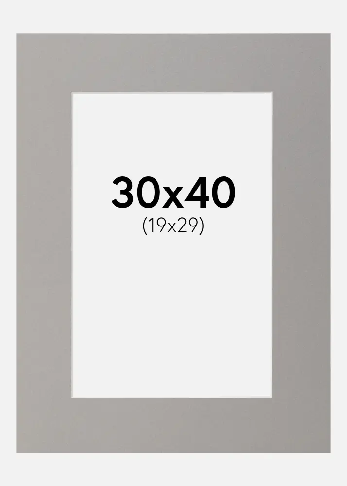 Galinga pilka paspartu su baltais, įstrižai pjaustytais vidiniais kraštais iš rūgščių neturinčio kartono.