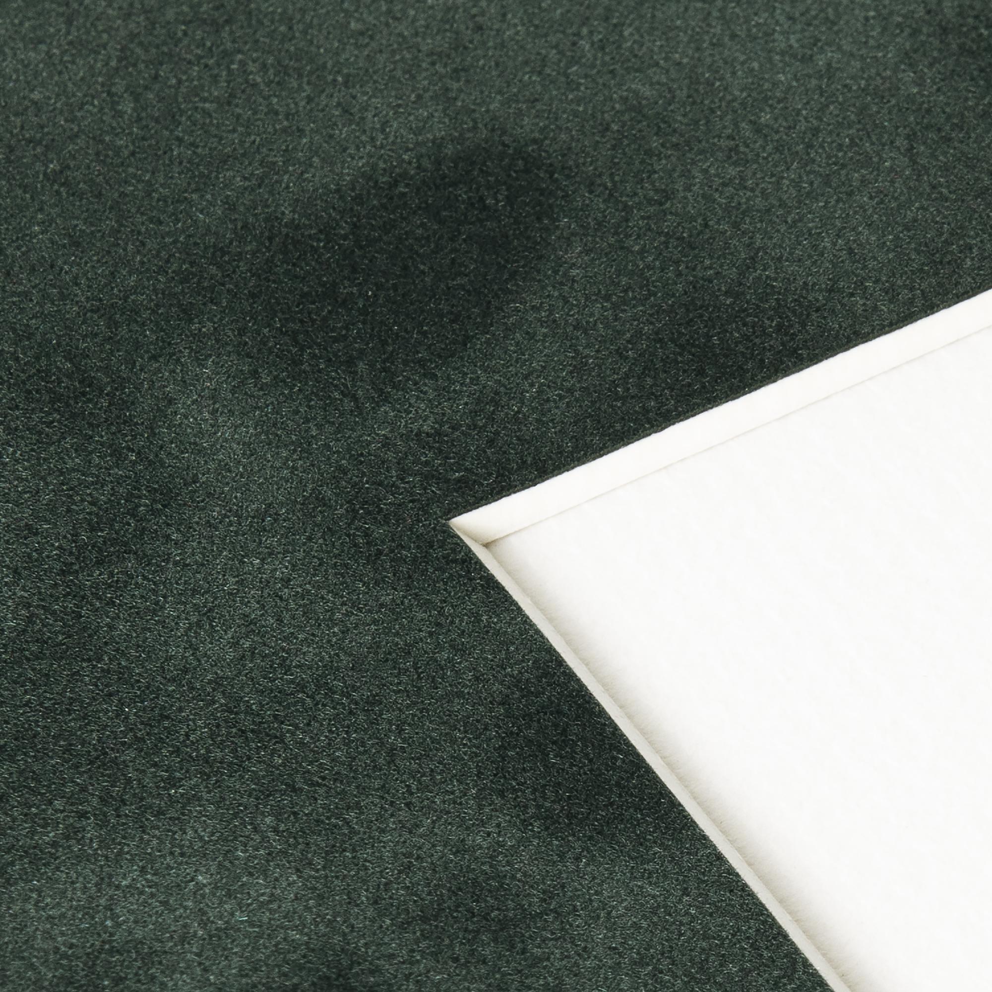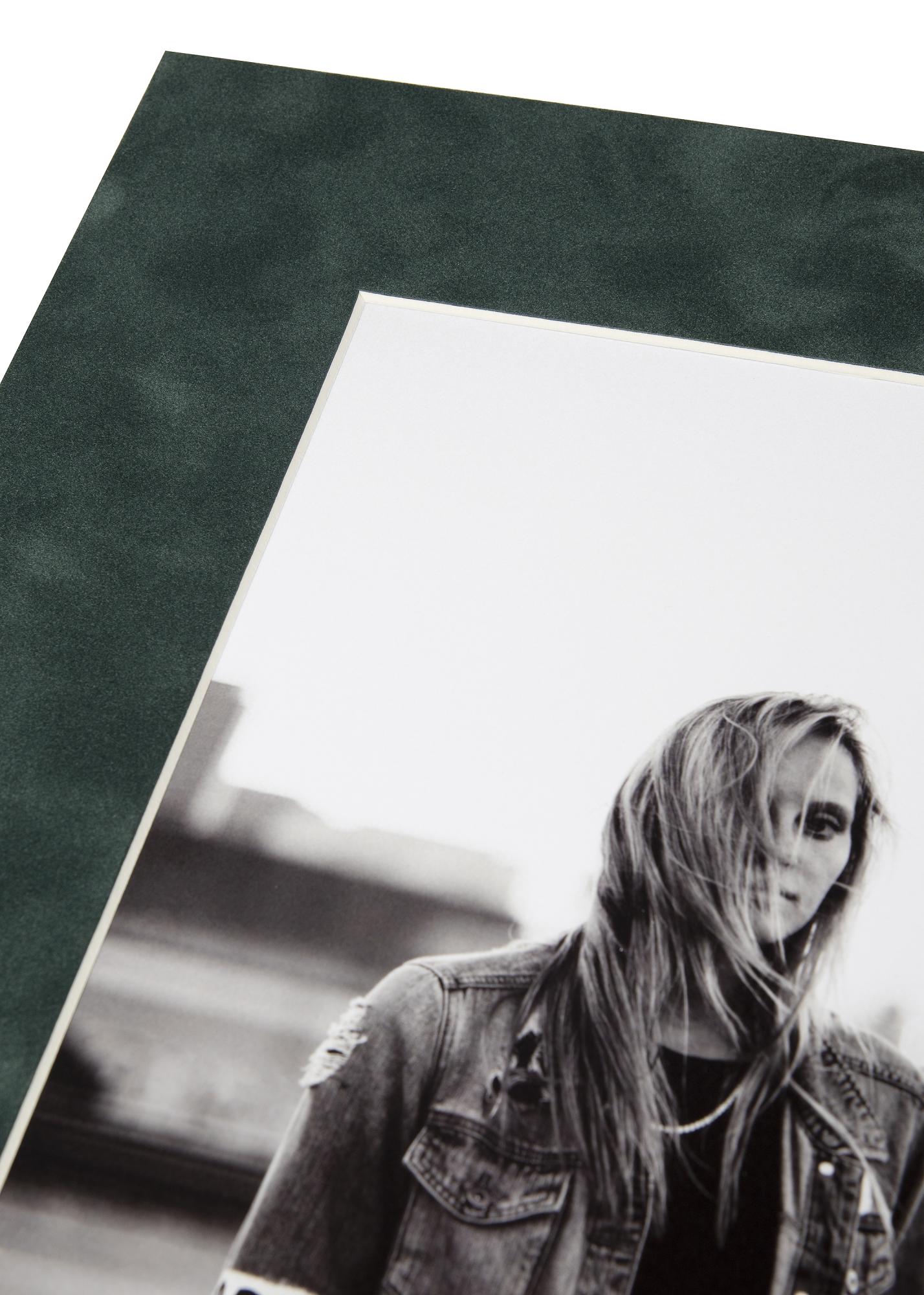 Paspartas Suede Pine turi elegantišką žalią atspalvį ir malonų zomšos pojūtį, kuris sukuria skoningą ir prabangią jūsų motyvo įrėminimą.