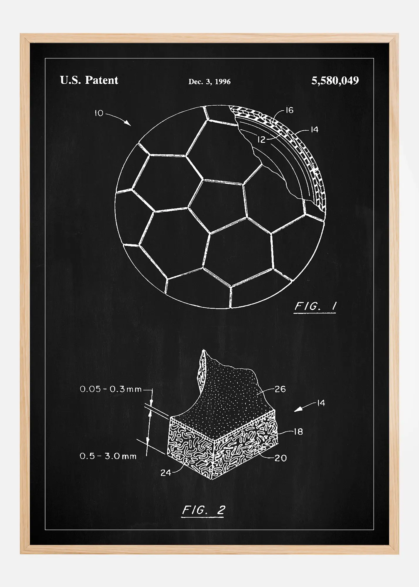 Su klasikinio juodai balto patento piešiniu ir elegantišku pateikimu, šis patento plakatas yra diskretiškas, bet išraiškingas interjero elementas, puikiai tinkantis namuose, biure ar sporto bare. Detalus eskizas pabrėžia futbolo ikonišką geometriją bei jo vidinį sudėtingumą ir konstrukciją, su matmenų nuorodomis, kurie suteikia autentišką jausmą. Šis patentų piešinys jungia estetiką su mokslu ir yra įkvepiantis priminimas apie techninius pasiekimus, formuojančius mūsų pasaulį.