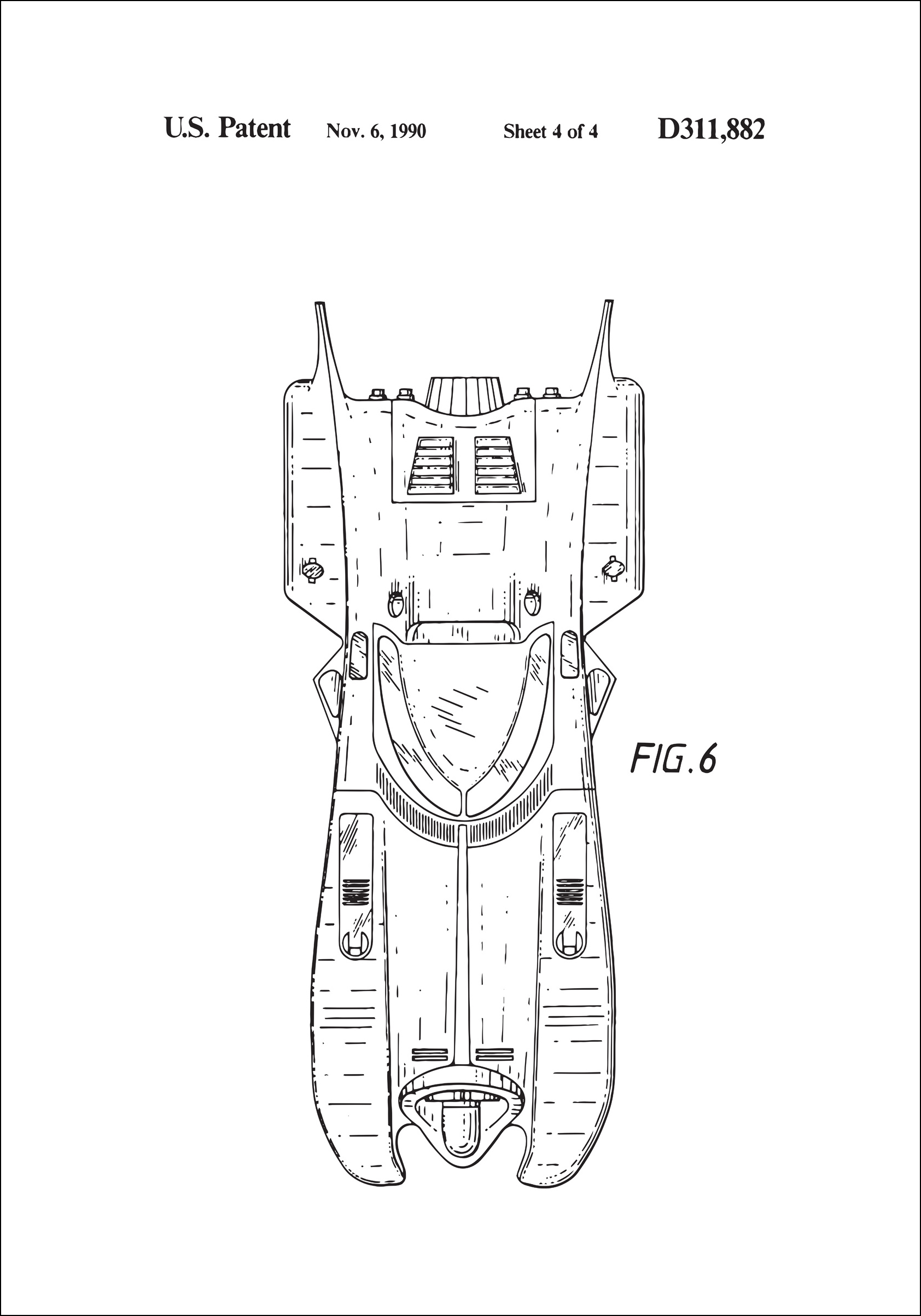 Šis patentinis brėžinys susijęs su JAV patentu numeris D311,882, datuotu 1990-ųjų lapkričio 6-ąja, kuris rodomas pačiame brėžinyje. Tai puiki dovana technologijų ir istorijos entuziastams, taip pat profesionaliems išradėjams ir dizaineriams, kurie vertina detaliai atliktą darbą, reikalingą idėjai paversti realybe. Šis patentuotas plakatas yra rafinuotas priedas bet kuriems namams ar biurui, suteikiantis laikui nepavaldžią estetiką, kuri niekada neišeina iš mados.