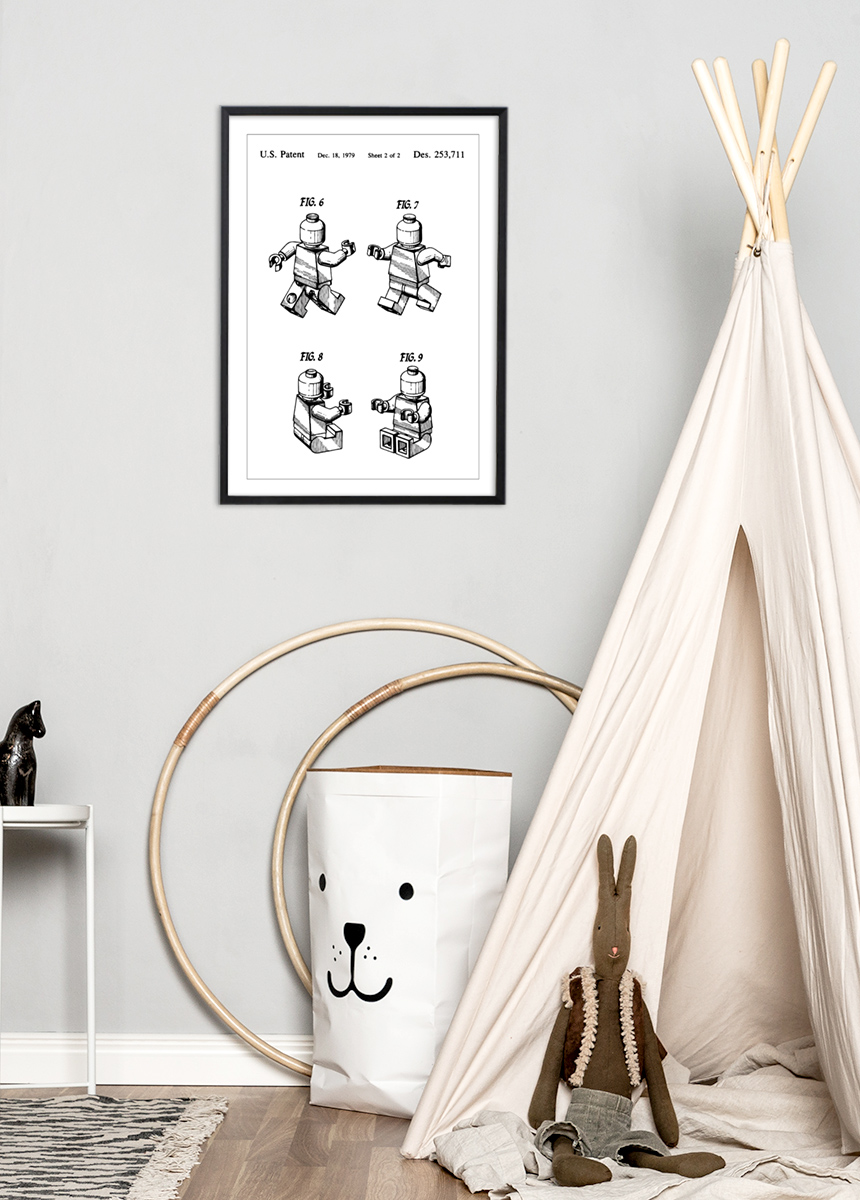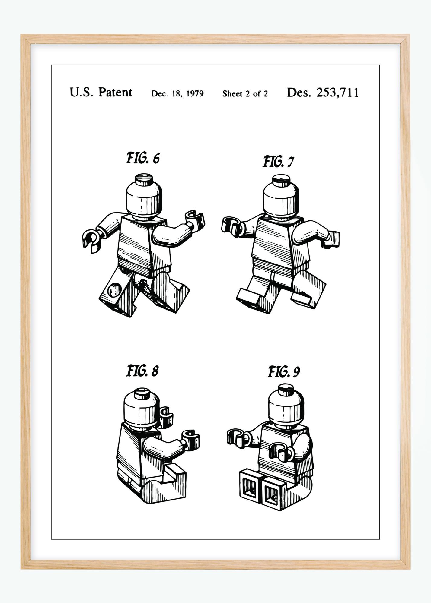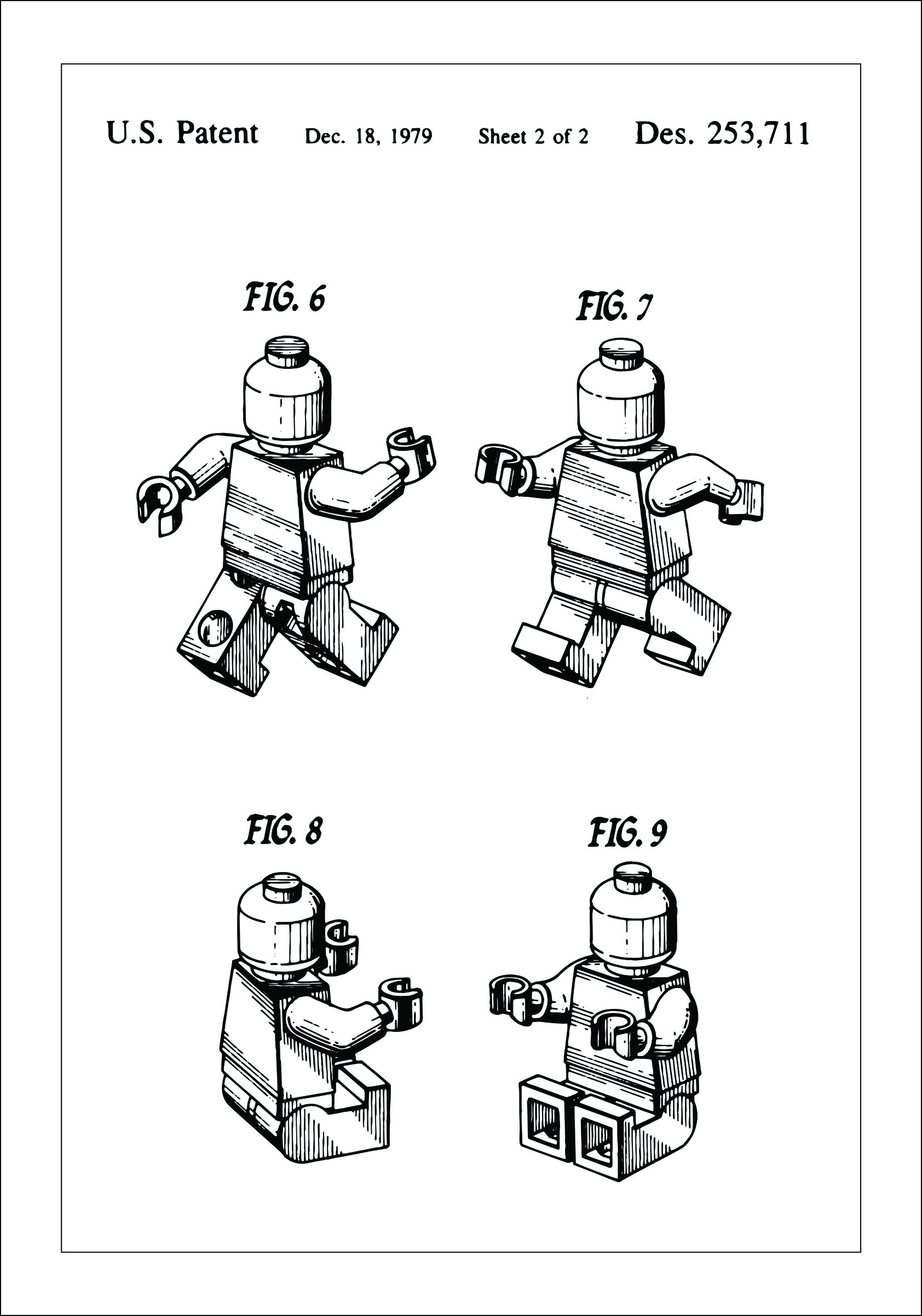 Šis patento plakatas vaizduoja Lego figūrėlę, kuri buvo užregistruota JAV patentų biure 1979 m. gruodžio 18 d. su patento numeriu Des. 253,711. Iliustracija rodo keturias skirtingas žaislo figūrėlės pozicijas, suteikdama dinamišką ir trimačią jos dizaino ir funkcionalumo suvokimą. Kiekvienas vaizdas parodo figūrėlės judumą ir įvairias pozas, kurias ji gali užimti.