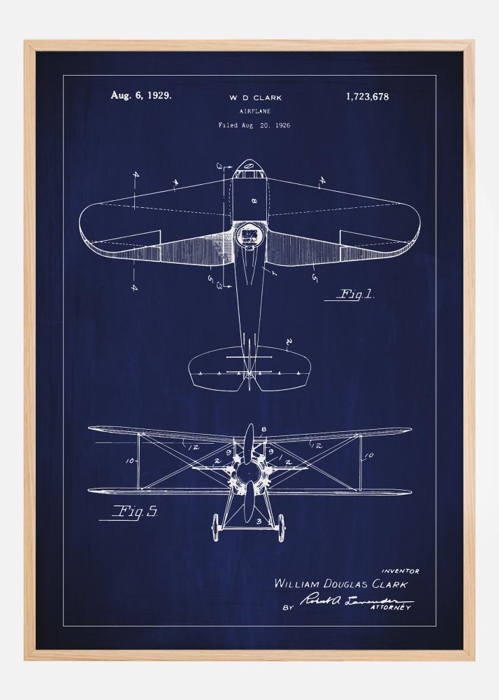 Sukurkite aviacijos istorijos atmosferą su šiuo patentu plakatu, kuris vaizduoja W D Clark'o novatorišką lėktuvo dizainą. Šis lėktuvas, kuriam patentas buvo suteiktas 1929 m. rugpjūčio 6 d. numeriu 1,723,678, yra aviacijos technologijų revoliucinio laikotarpio ikona. Tamsus fonas gražiai kontrastuoja su detalizuotomis baltomis linijomis ir sukuria didingą ir apgalvotą dekoratyvinę detalę.