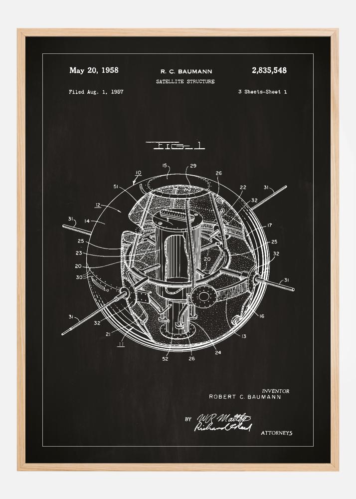 Su aštriomis baltomis linijomis, išsiskiriančiomis prieš gilų juodą foną, ši patentinė afisa siūlo žavų istorinės technologijos žvilgsnį ir yra įspūdinga dekoratyvinė detalė visiems, kurie domisi kosmosu, mokslu ir istorine inovacija. Tai įkvepiantis priminimas apie žmogaus siekį tyrinėti už mūsų pačių planetos ribų ir būtų įspūdinga detalė bet kuriame kambaryje.