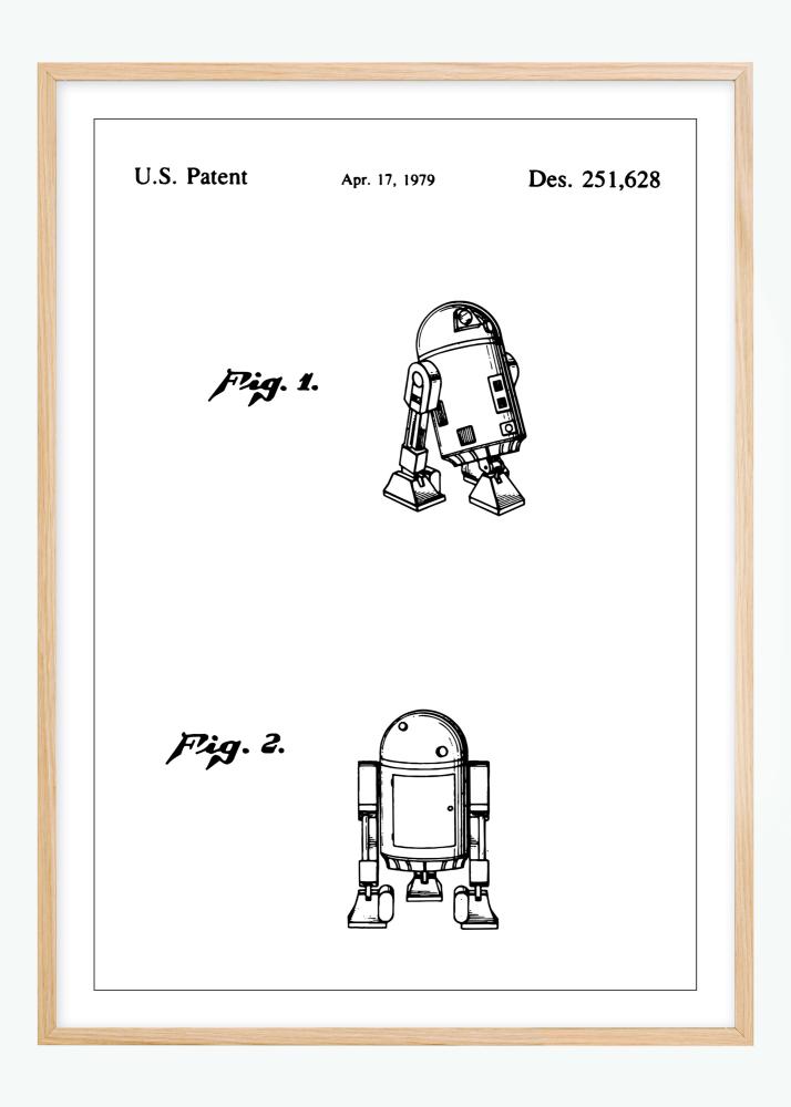 Šis žavus patentinis plakatas užfiksuoja retrofuturizmo esmę su R2D2 iš StarWars dizainu, kuris atspindi laikotarpio vizionierišką požiūrį į ateities technologijas. Su amerikietišku patentu, datuotu 1979 m. balandžio 17 d., registracijos numeriu Des. 251,628, šis motyvas iliustruoja dvi ikoninės roboto figūros perspektyvas: visą profilį ir priekinį vaizdą. Tai yra nesenstanti patentinė piešinys, kuris yra tiek pagarba, tiek dokumentacija vėlyvųjų XX a. pažangai robotikoje ir jos įtakai popkultūroje.
