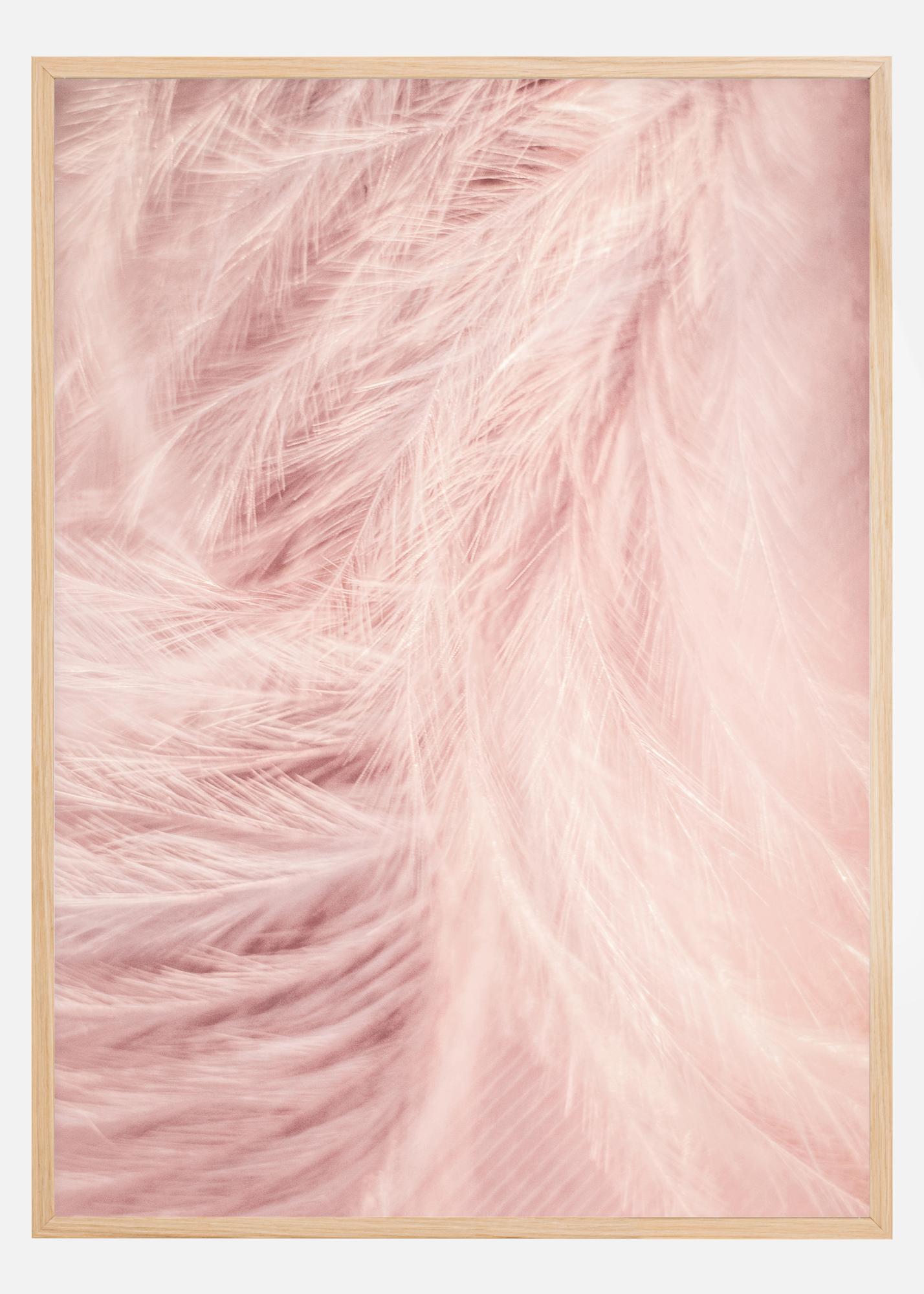 Nuostabus stambaus plano plakatas su švelniais rožiniais plunksnos motyvais. Dėl stiprios šviesos, kuri krinta ant plunksnų, neaišku, ar plunksnos iš tikrųjų yra rožinės ar baltos. Ar tai rožinė šviesa, atsispindinti nuo plunksnų? Pakabinkite ją savo namuose, kad sukurtumėte švelnų šiltą jausmą.