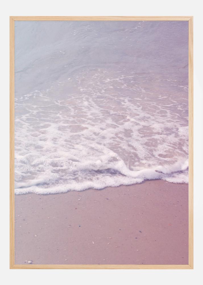 Puikus jūros paplūdimio portretas. Kai bangos daužosi į krantą, ant smėlio susidaro balti putos. Gražus rožinis smėlis ir jūra sukuria vasaros nuotaiką. Atsineškite vasarą į savo namus su šiuo gaivinančiu plakatu.