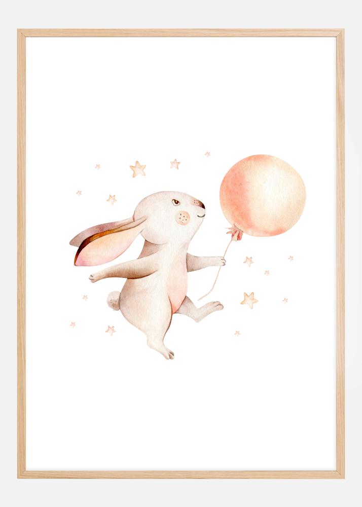 Šis žavus plakatas vaizduoja laimingą triušį, sklendžiantį ore didelio, spalvoto baliono pagalba. Mažos aukso žvaigždutės aplink jį sukuria svajingą akvarelės magijos ir laisvės jausmą. Iliustracijos šviesūs ir šilti tonai suteikia žaismingumo ir džiaugsmo nuotaikų, todėl ji puikiai tinka skleisti džiaugsmą vaiko kambaryje arba bet kuriame jaukiame namų kampelyje.