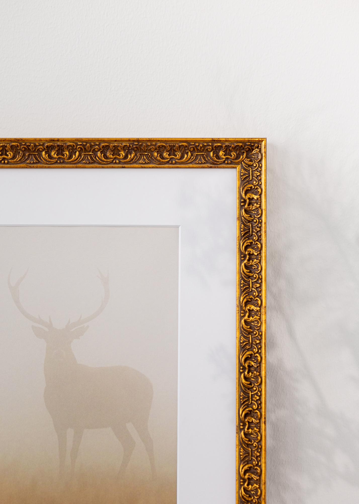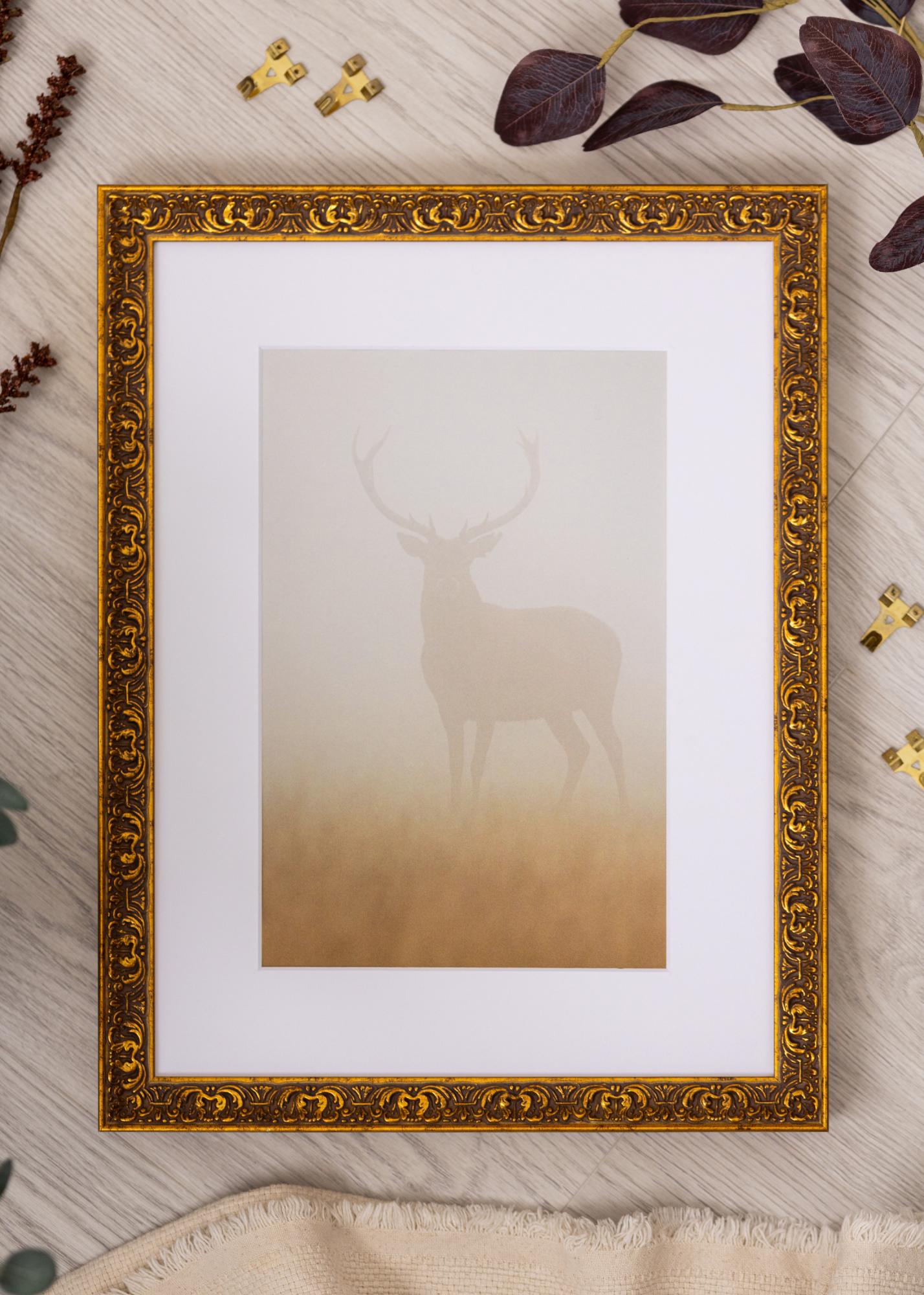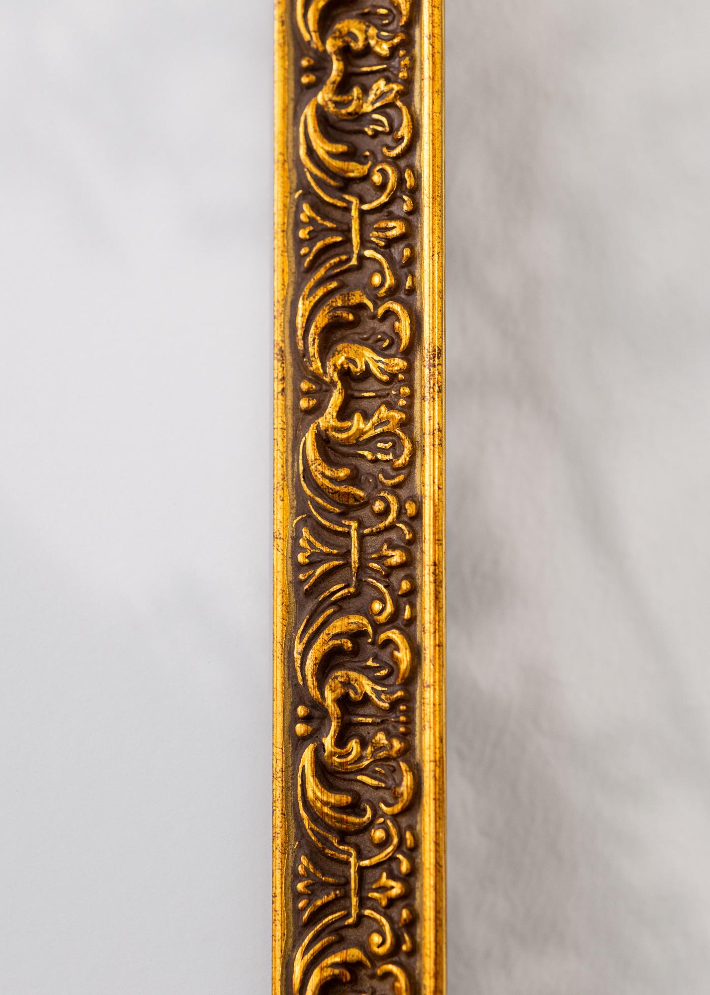 Šis elegantiškas aukso spalvos nuotraukų rėmelis yra tobula tradicijos ir prabangos derinys. Su savo dekoratyvinėmis, ornamentuotomis detalėmis ir antikiniu aukso apdaila, jis suteikia laiko neturinčio grožio jausmą. Rėmelis puikiai tinka paryškinti portretus, meno kūrinius ar istorinius motyvus, todėl tai puikus pasirinkimas tiems, kurie nori sukurti rafinuotą atmosferą savo namuose.
