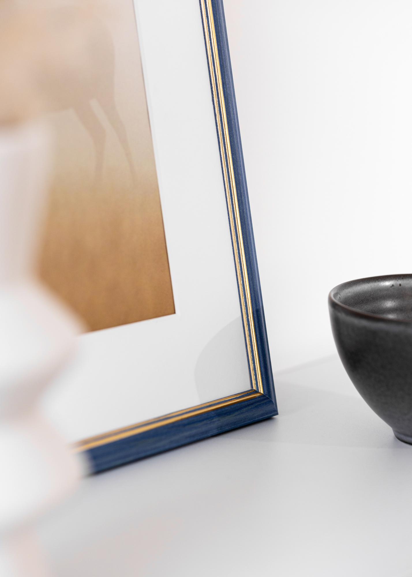 Šis elegantiškas nuotraukų rėmelis gilaus mėlynumo atspalvio yra tobula klasikinio dizaino ir šiuolaikiško funkcionalumo kombinacija. Su 40x50 cm dydžiu, jis yra idealus išryškinti jūsų mėgstamus motyvus, ar tai būtų meno kūriniai, ar fotografijos. Plonas rėmelis, kurio plotis yra 15 mm ir gylis 15 mm, suteikia rafinuotumo pojūtį ir tobulai papildo subtilios auksinės detalės palei kraštą. Medžio struktūra švelniai matosi per spalvą, kas suteikia rėmeliui šiltą ir gyvą charakterį.