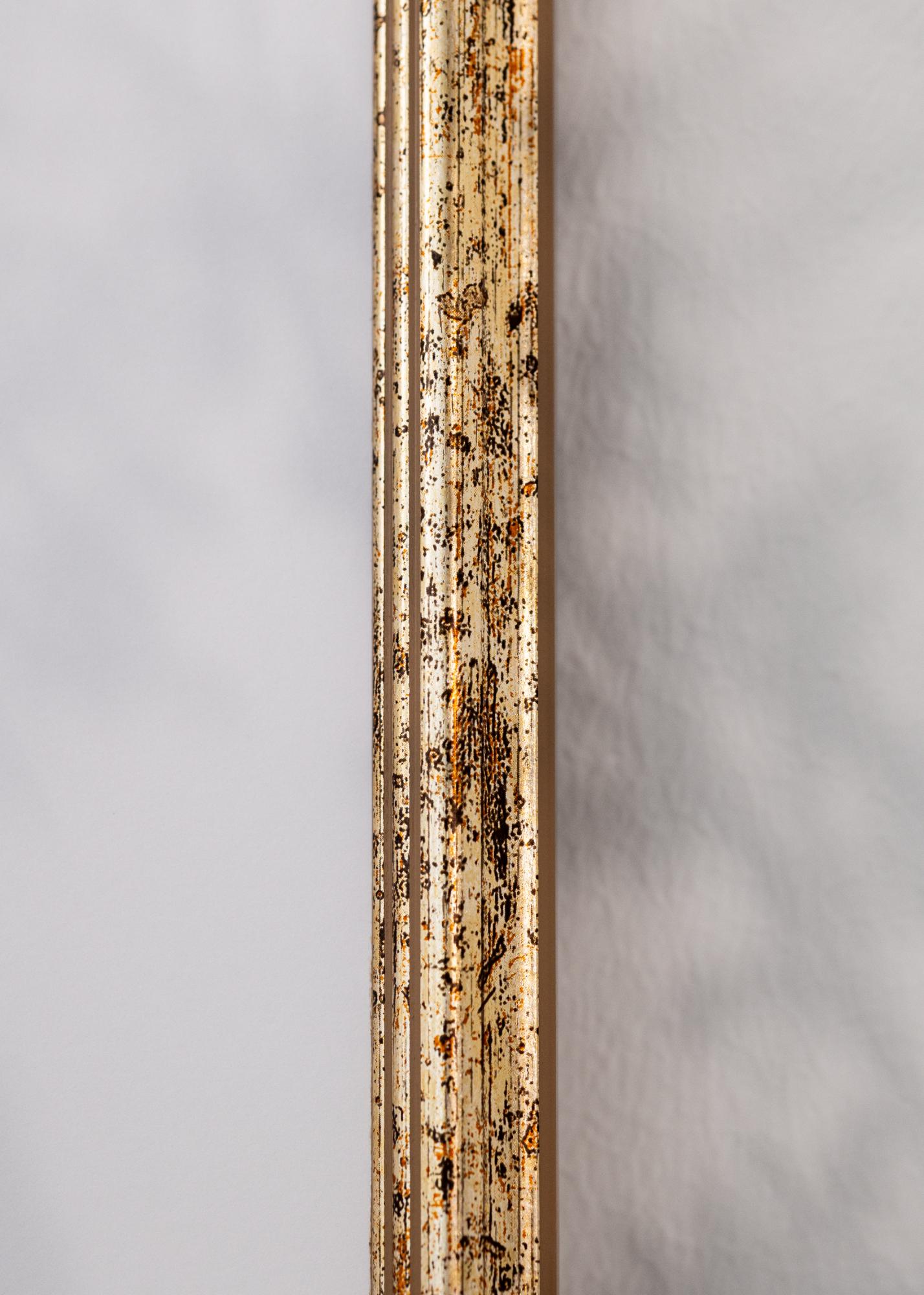 Šis elegantiškas sidabrinis nuotraukų rėmelis yra tobula klasikinio dizaino ir šiuolaikinio funkcionalumo kombinacija. Su 59,4x84,1 cm (A1) dydžiu jis idealiai tinka pabrėžti jūsų mėgstamiausias fotografijas ar meno kūrinius. Rėmas yra pagamintas iš medžio ir turi retro stiliaus dizainą su antikvariniu auksiniu apdaila ir sendinta patina, kas suteikia jam kaimišką ir žavų charakterį.