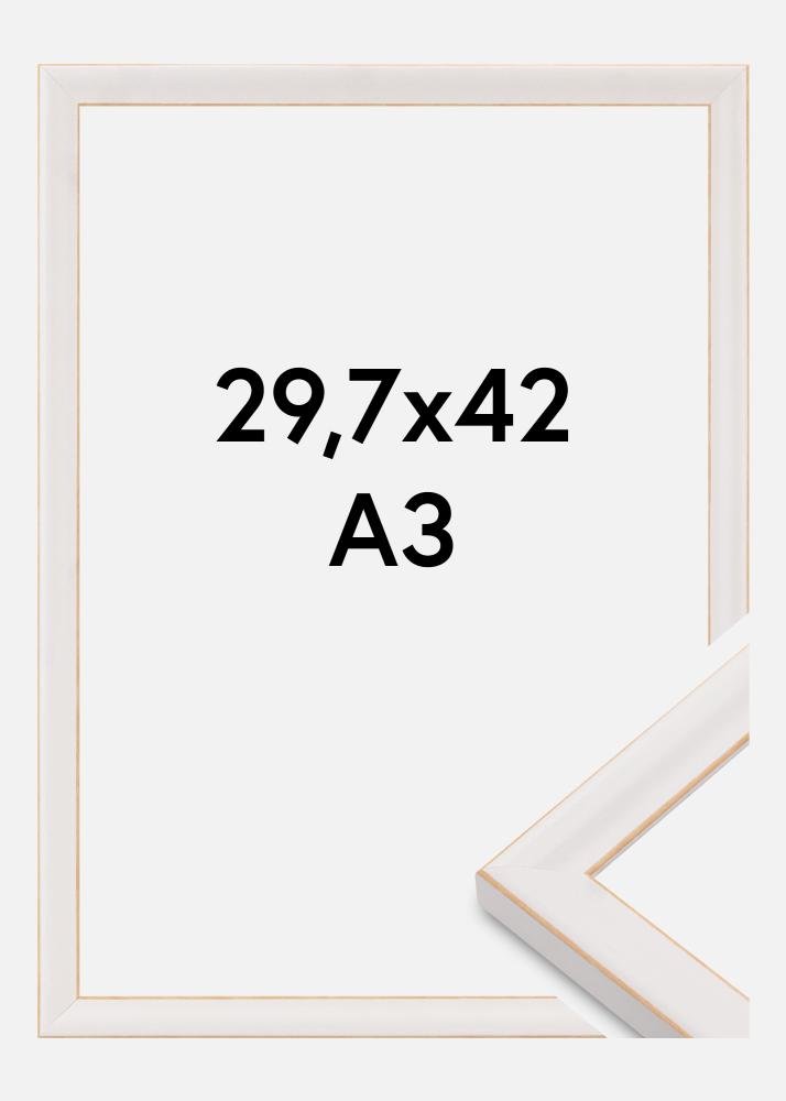 Rėmas pagamintas iš medžio ir turi 20 mm pločio rėmo juostą bei 16 mm gylį. Prie vidinio krašto einanti nuostabi aukso detalė rėmina vaizdą su išskirtiniu pojūčiu. Su savo 29,7 x 42 cm dydžiu jis puikiai tinka A3 formato motyvams. Šis nuotraukų rėmas turi metalinius kabliukus ant nugaros, todėl jį lengva pakabinti horizontaliai arba vertikaliai, priklausomai nuo jūsų poreikių.