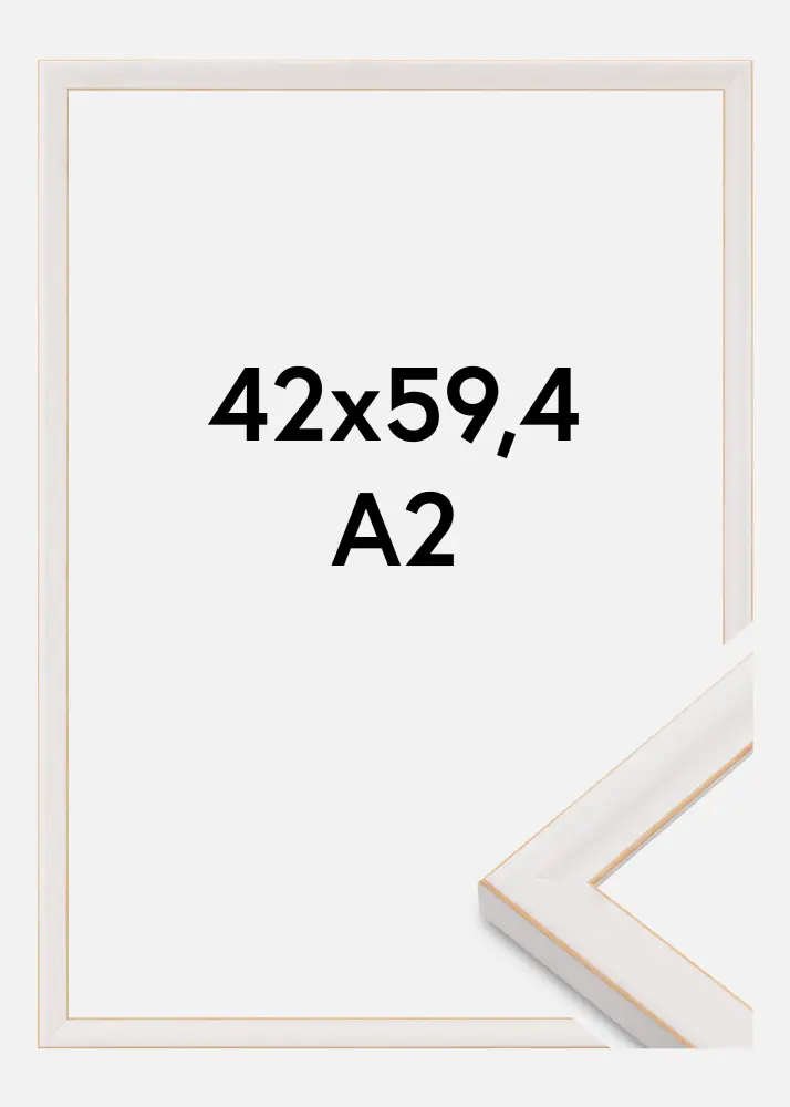 Šis elegantiškas nuotraukų rėmelis minkštos, kreminės baltos spalvos su plona auksine briauna yra tobula klasikinio ir modernaus dizaino kombinacija. Rėmelio dydis 42x59,4 cm (A2) yra idealus, kad akcentuotų meno kūrinius, fotografijas ar prisiminimus nesenstančiu būdu. Subtili aukso detalė palei vidinį kraštą suteikia išskirtinį pojūtį, kuris stilingai įrėmina jūsų nuotraukas.