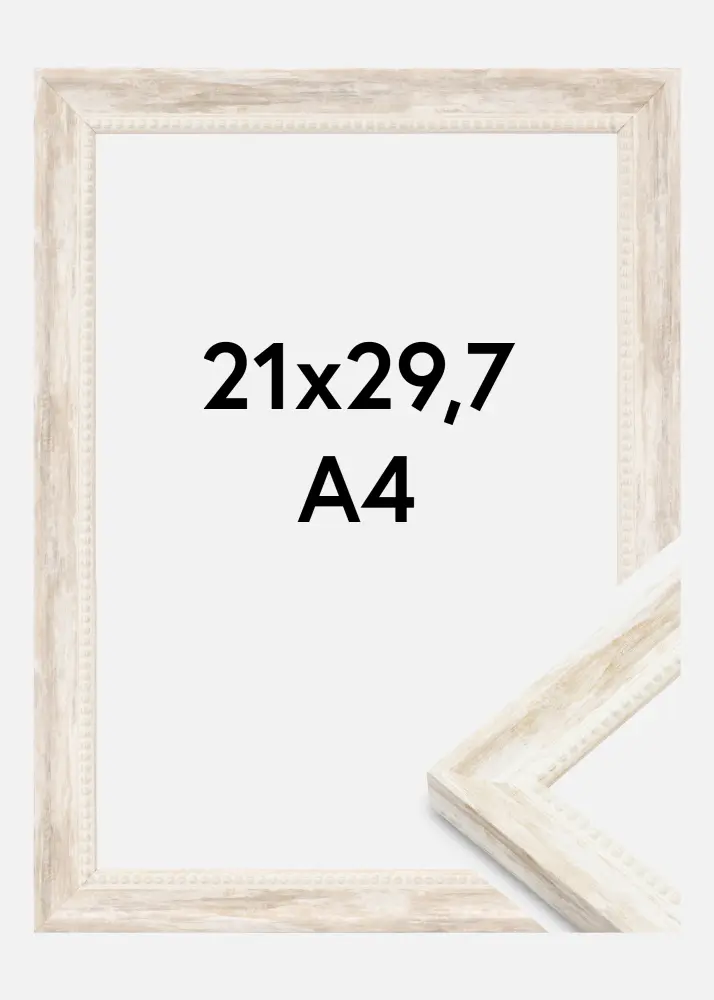 Šis gražus nuotraukų rėmelis, kurio dydis yra 21x29,7 cm (A4), yra tobula kaimiško žavesio ir elegantiško stiliaus kombinacija. Su savo balta spalva ir dekoratyvine perlų kraštu vidinėje pusėje, jis suteikia subtilų antikinį pojūtį, kuris pagerina bet kurį meno kūrinį ar fotografiją. Šis paveikslų rėmas pagamintas iš medžio ir turi 25 mm pločio rėmo juostą bei 19 mm gylio, suteikiančio tvirtumo ir solidumo.