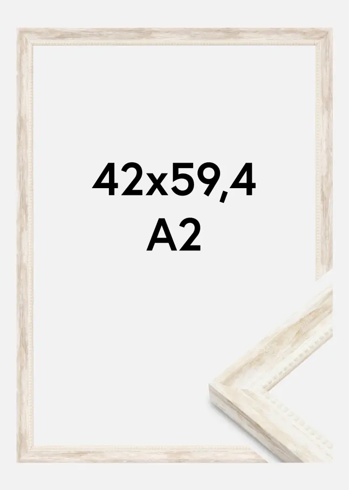 Atraskite gražų 42x59,4 cm dydžio nuotraukų rėmelį, kuris sujungia eleganciją su kaimišku žavesiu. Šis baltas paveikslų rėmas yra pagamintas iš medžio ir turi subtilų antikinį jausmą, kurį sustiprina dekoratyvinė perlo juostelė išilgai viduje. Dėl savo klasikinio ir detalėmis turtingo dizaino jis puikiai tinka įrėminti tiek meno kūrinius, tiek fotografijas, nesvarbu, ar jūsų interjeras yra modernus, ar tradicinis.