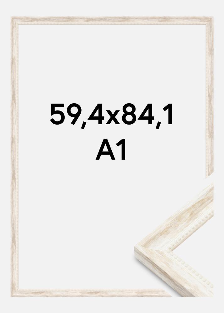 Šis gražus nuotraukų rėmelis, kurio dydis yra 59,4x84,1 cm, yra puikus derinys tarp kaimiškos žavesio ir elegantiško stiliaus. Su savo balta spalva ir dekoratyvine perline briauna vidinėje pusėje, jis suteikia subtilų senovinį pojūtį, kuris pagerina ir meno kūrinius, ir nuotraukas. Šis paveikslų rėmelis yra pagamintas iš medžio ir turi 25 mm pločio rėmo juostelę bei 19 mm gylį, suteikdamas tvirtą ir solidų pojūtį.