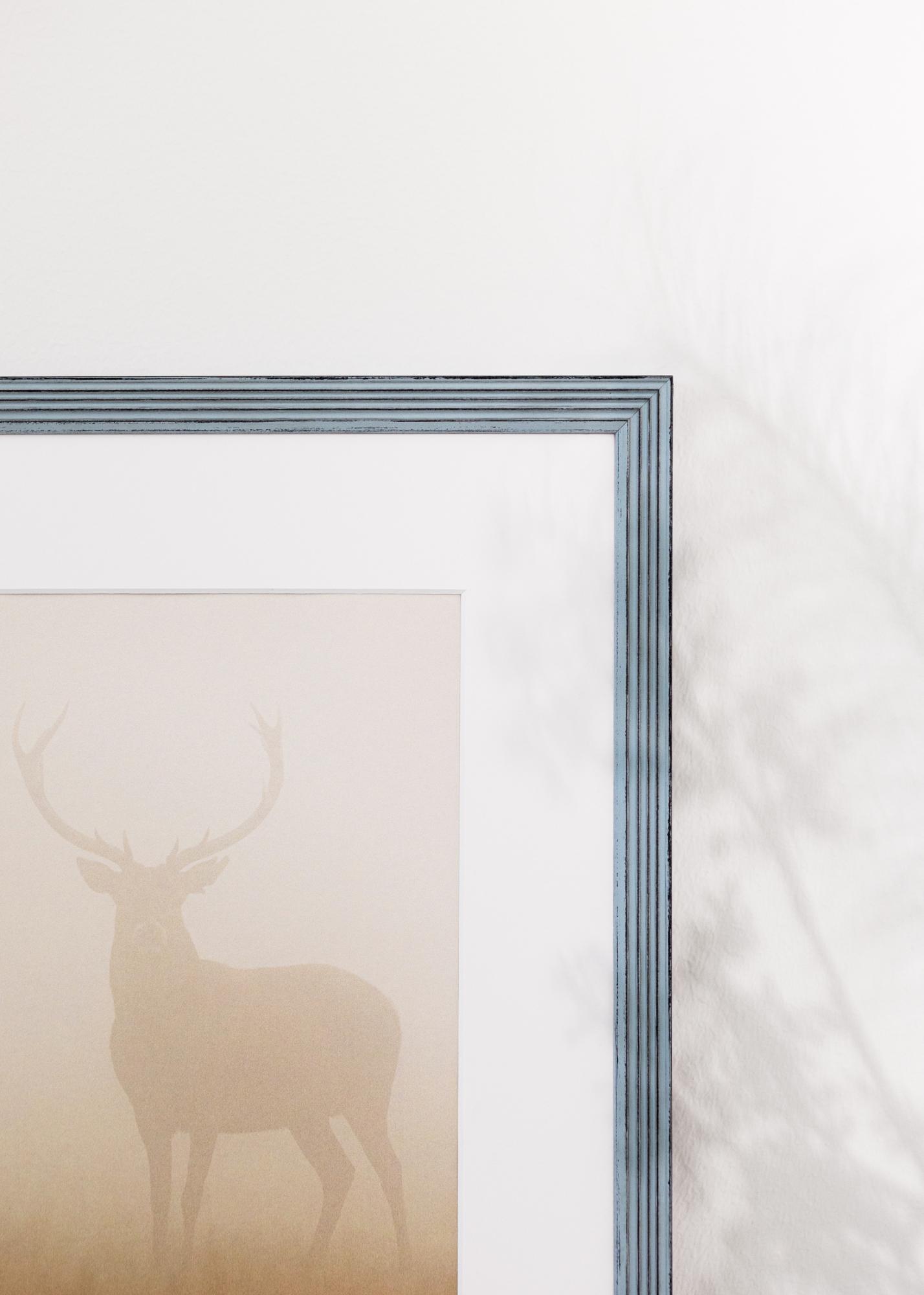 Šis stilingas medinis rėmas, matuojantis 70x100 cm, yra tobula elegancijos ir funkcionalumo kombinacija. Su savo gražia pilkai mėlyna apdaila ir subtiliu raštų, jis suteikia senovinį pojūtį, kuris sustiprina kiekvieną motyvą. Su profiliuotu dizainu ir plonomis linijomis išilgai kraštų, jis suteikia nesenstančią ir rafinuotą išvaizdą, todėl puikiai tinka tiek klasikiniam, tiek moderniam interjerui.