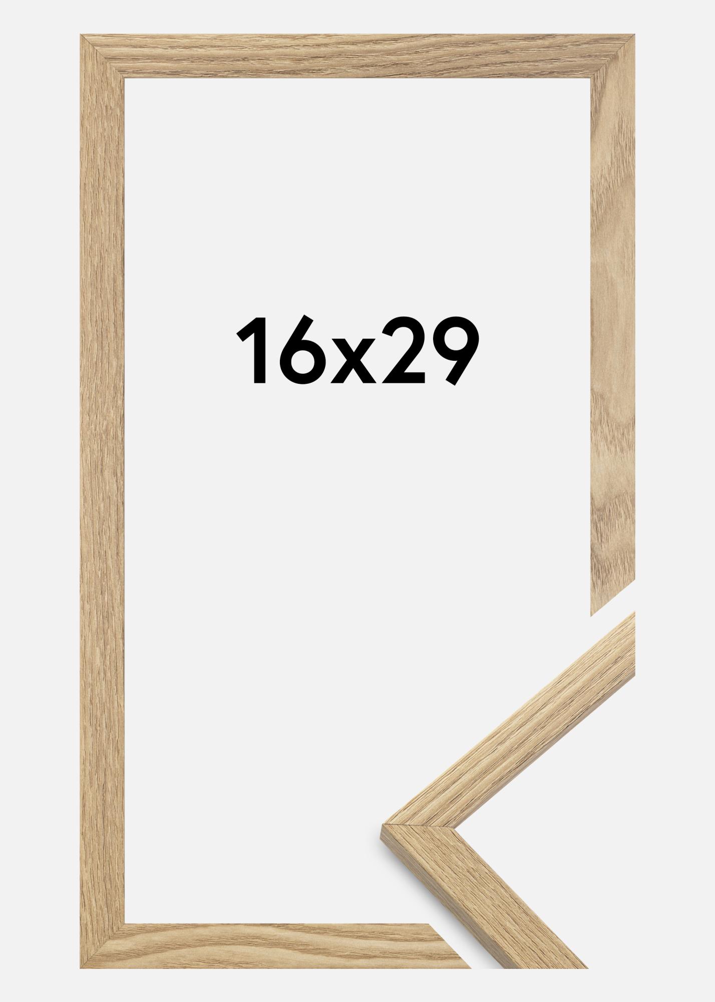 Rėmas pagamintas iš MDF medžiagos su laminuotu ąžuolo spalvos paviršiumi ir turi ploną rėmo profilį, kuris yra 14 mm. Yra pakankamai vietos, kad galėtumėte papildyti savo nuotraukas prabangia kartonine įdėkle dėl rėmo vidinio gylio (rėmo kraštelio gylis) 12 mm.